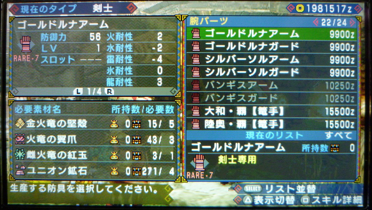 まだ未作成だった武器・防具を作成することができた。