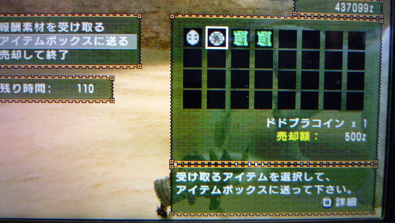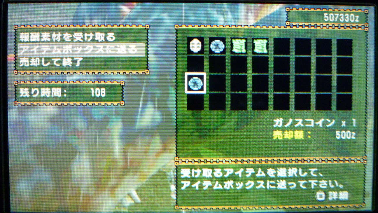 敵によっては、秘薬が欲しいかなといったとこですね…G級なので攻撃が半端ない…。