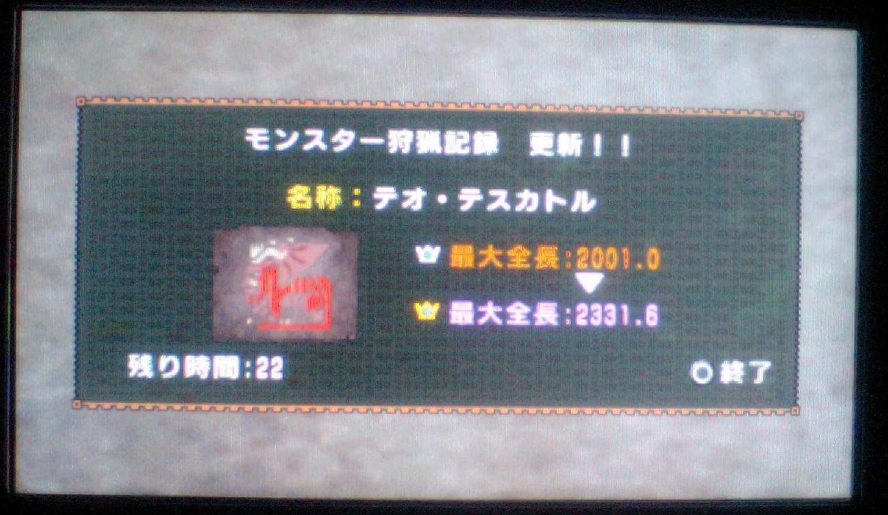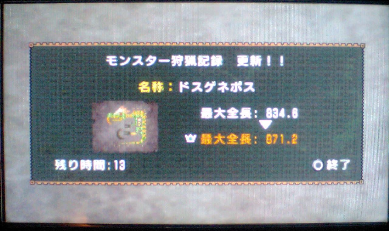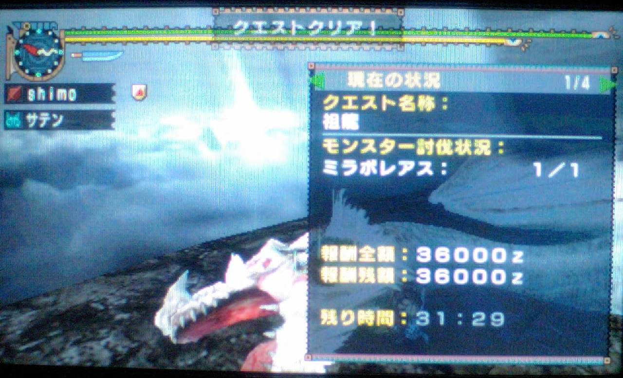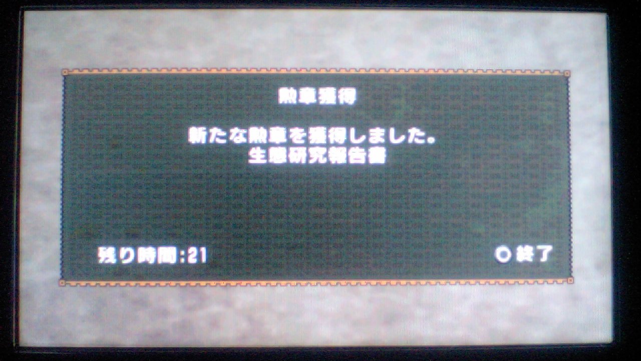 それから若干のタイムラグのあと、狩猟成功のメッセージが出たときは