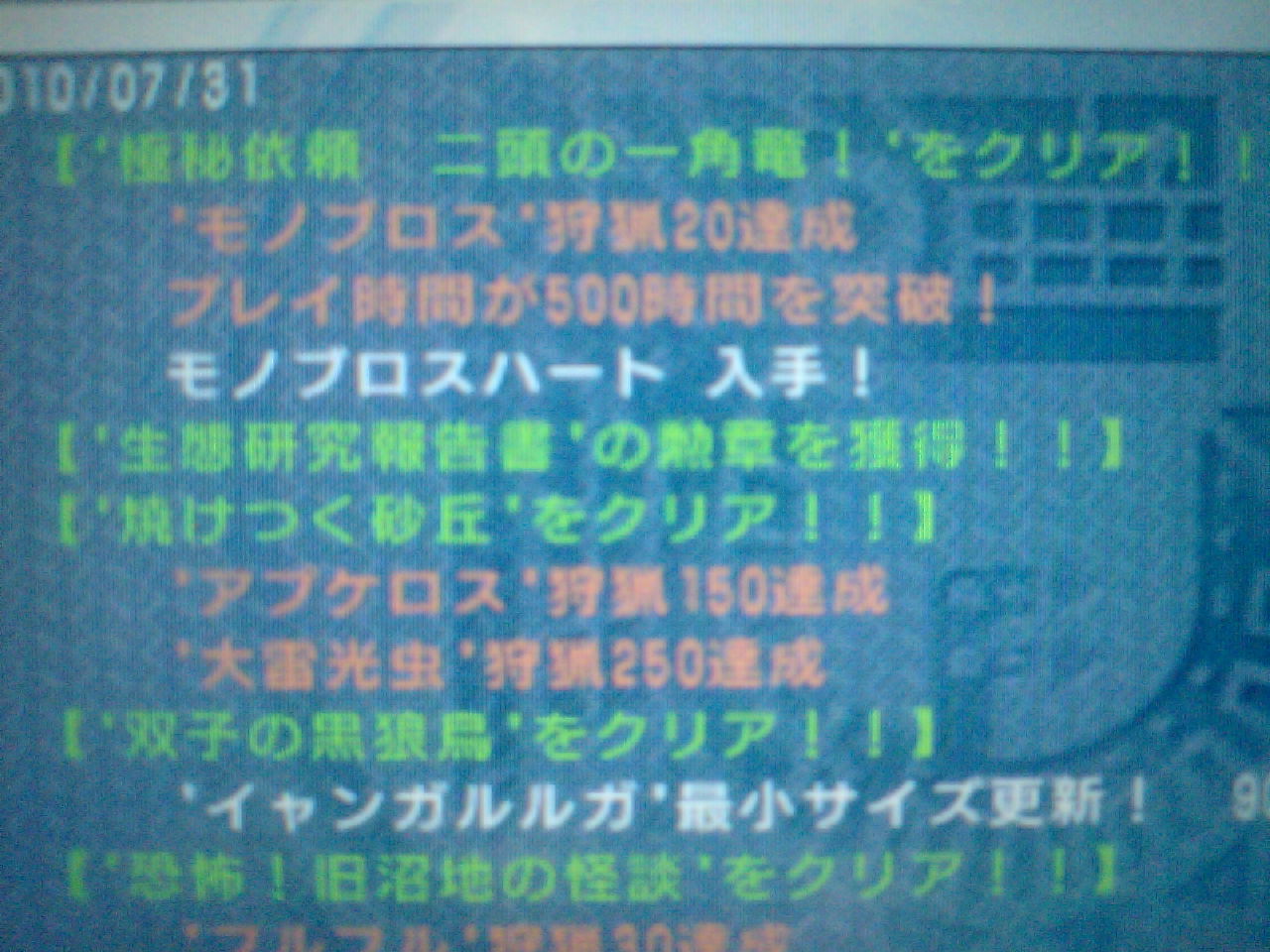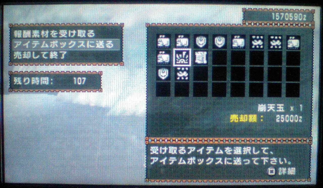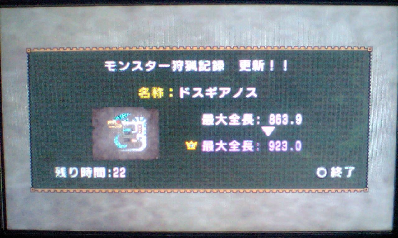 それから若干のタイムラグのあと、狩猟成功のメッセージが出たときは