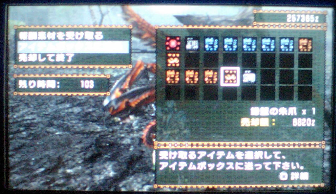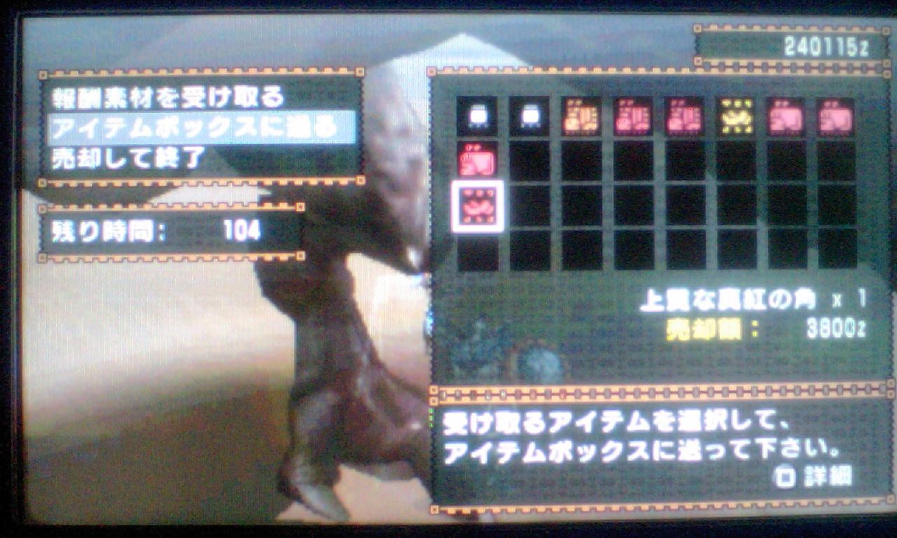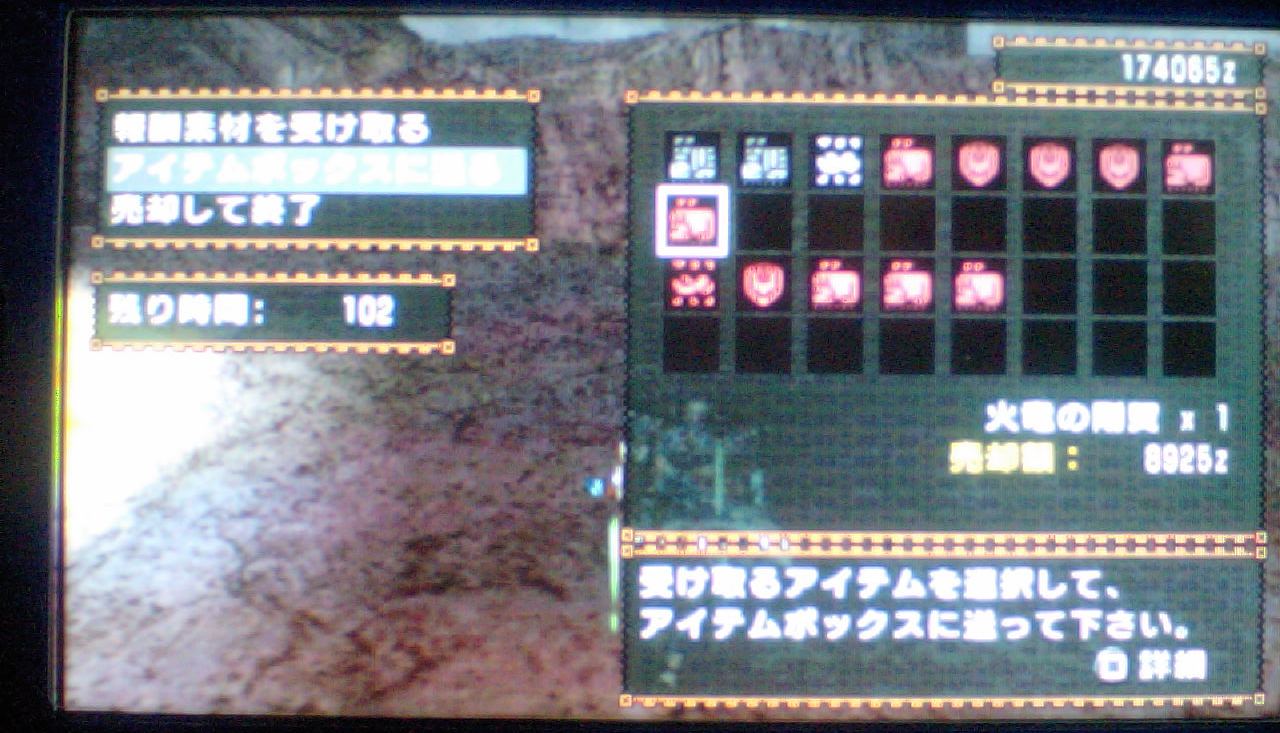 報酬画面撮り忘れたけど、ほとんどの素材が5000以上、中には10000オーバーのものも。