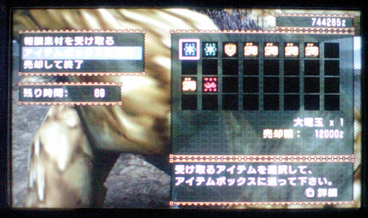 目立ったレア素材というのはないけど、大竜玉が取れた!