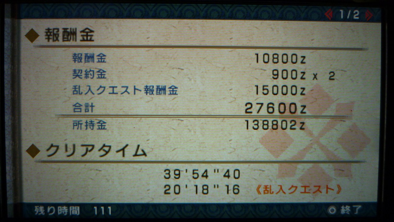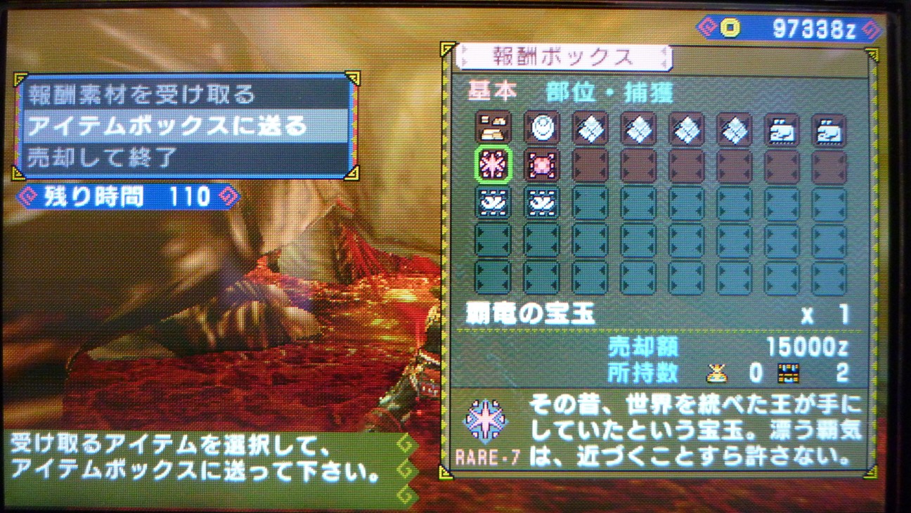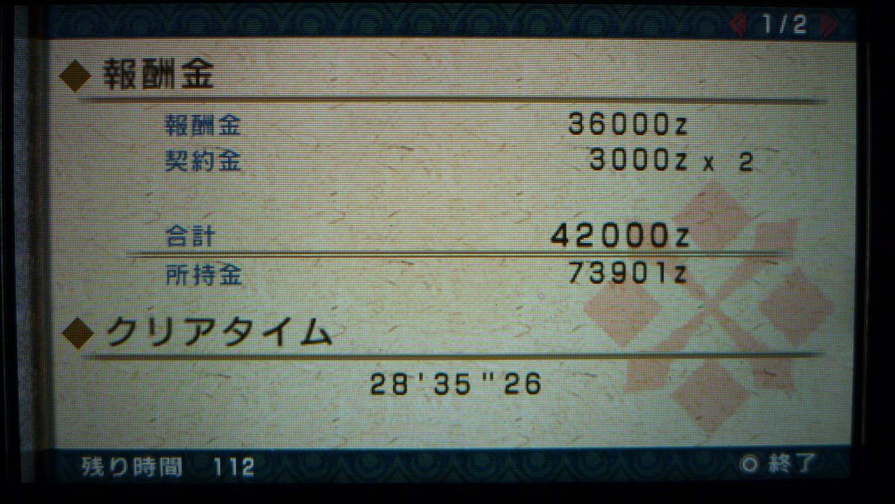 気づいたのが報酬画面でアイテムを回収している最中だったので、