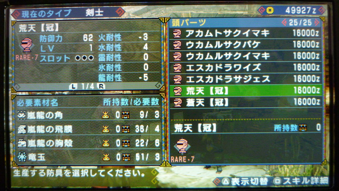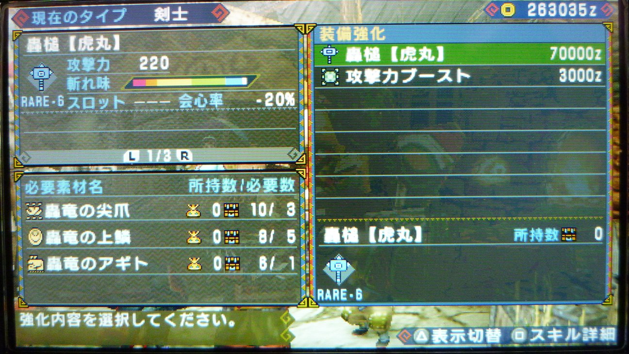武器の作成もはかどって、防具はね…武器に比べたらそんなにお金もかからんし、