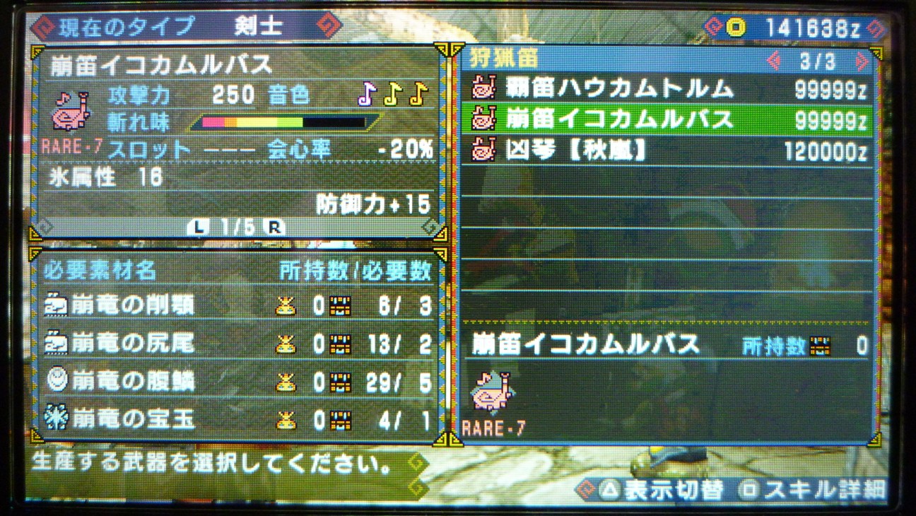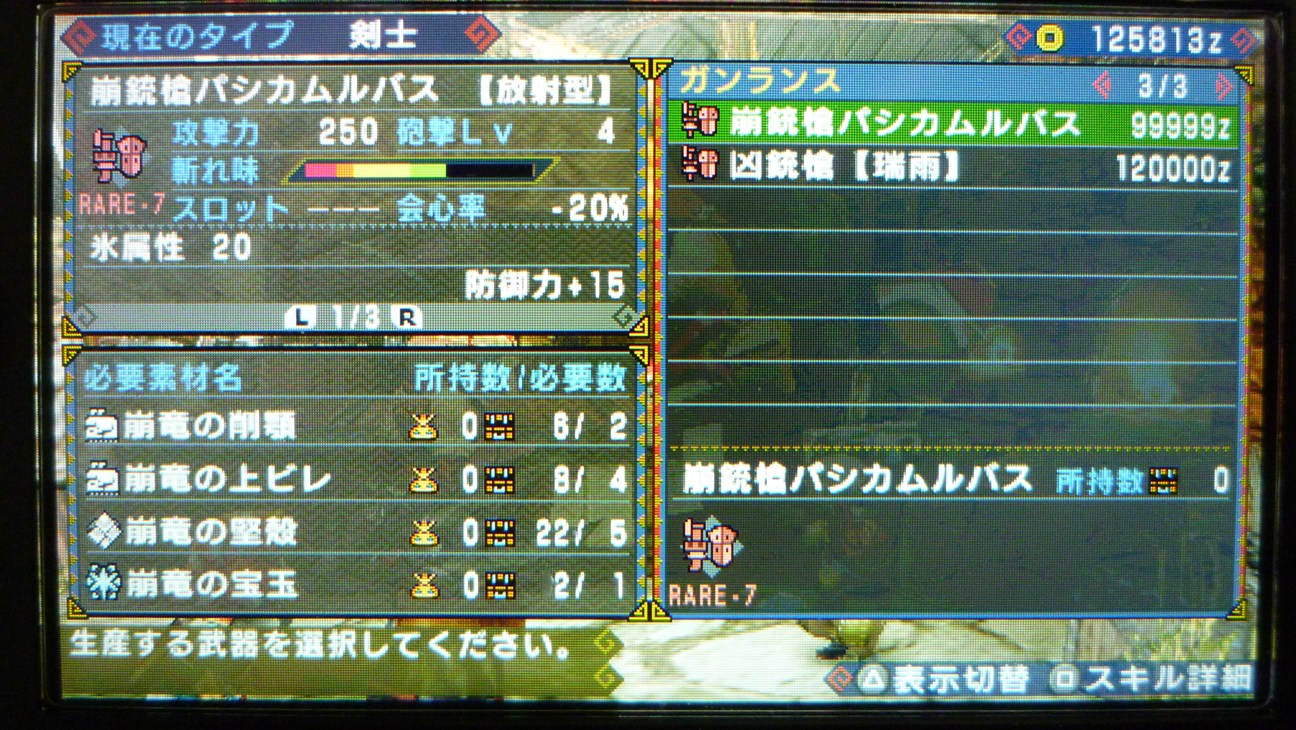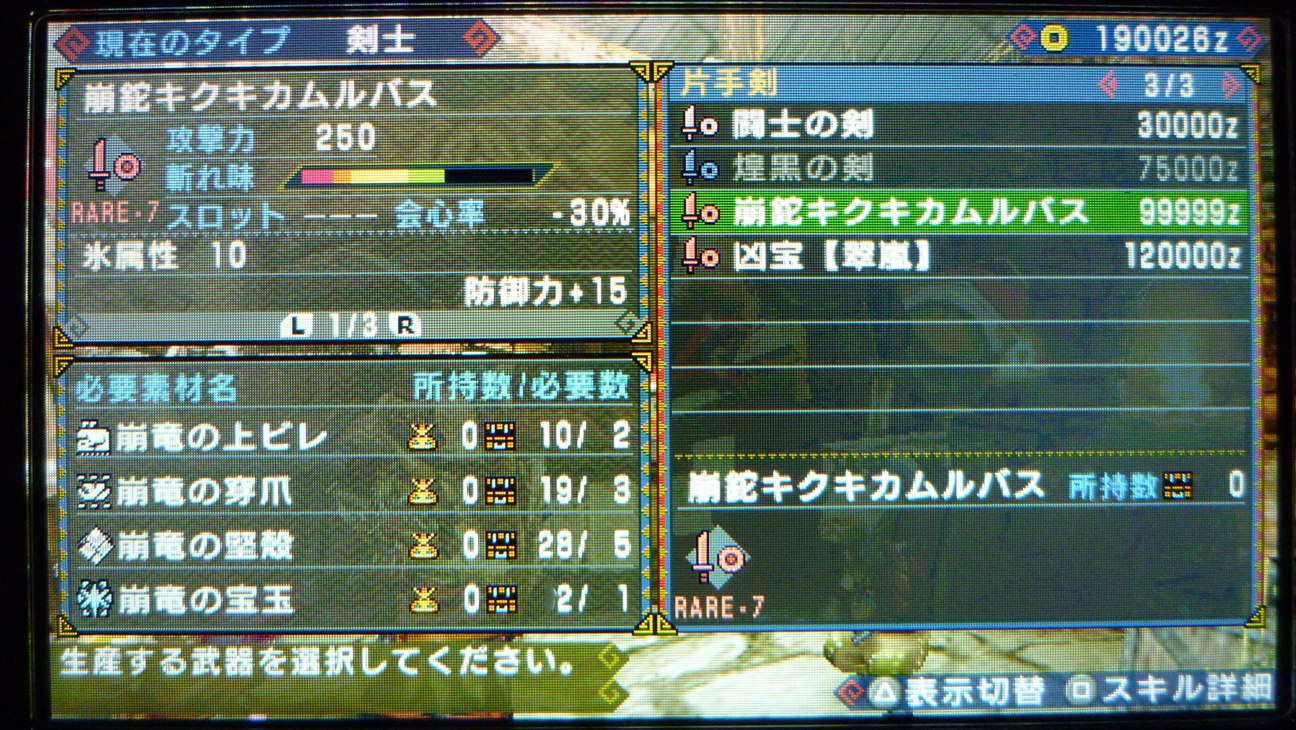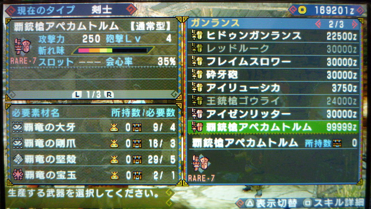 またこれで一発生産武器が作れるわけだが…お金がない…。