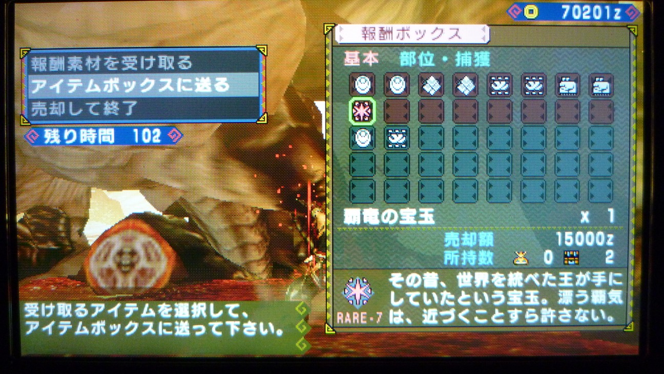 最後の方は、古龍とアカウカローテしていたこともあって奇跡的にタマが多く取れたので、