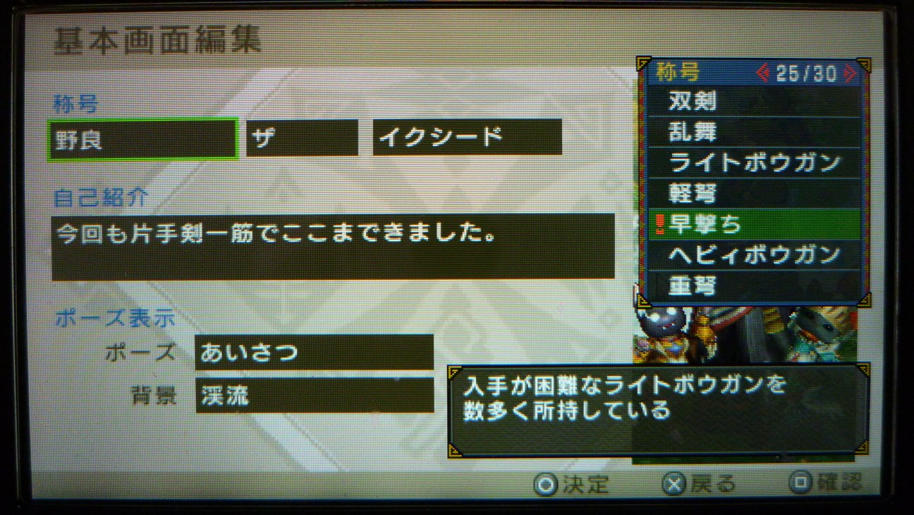 迷った挙句、狩猟数が少ないアマツに行くことに。