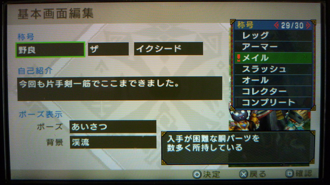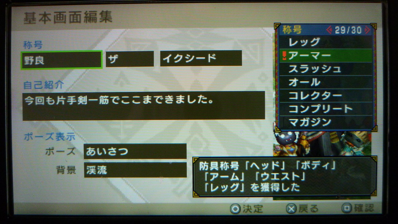 レア度6・7の防具を各部位ごとに5つ作成するという条件。