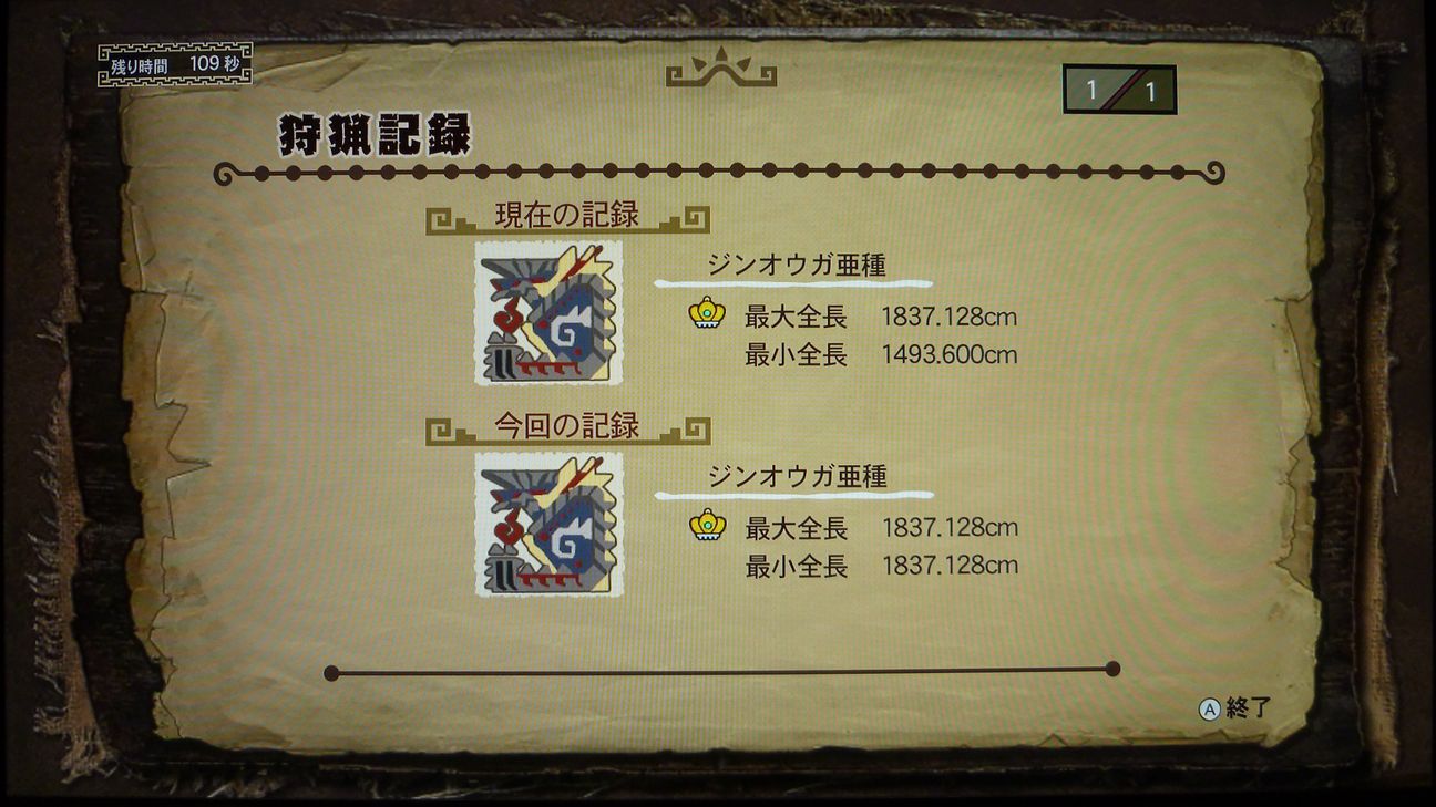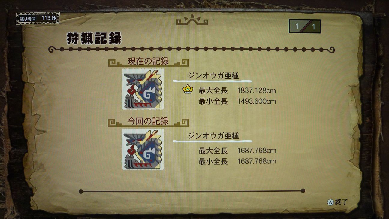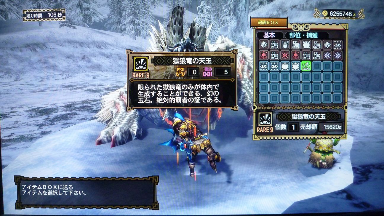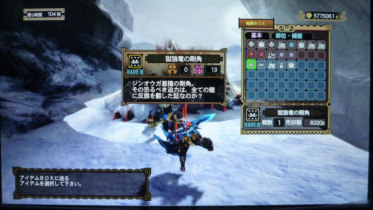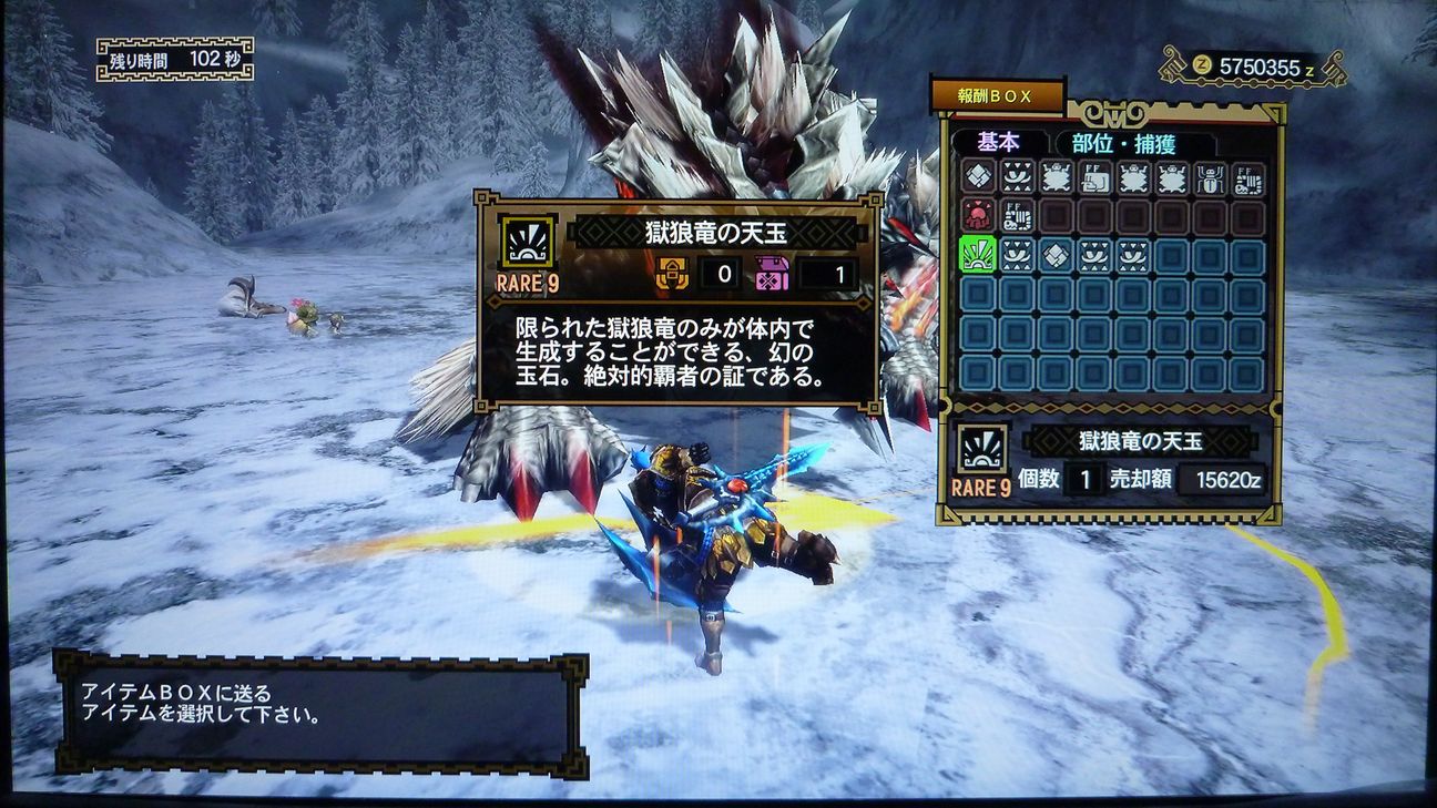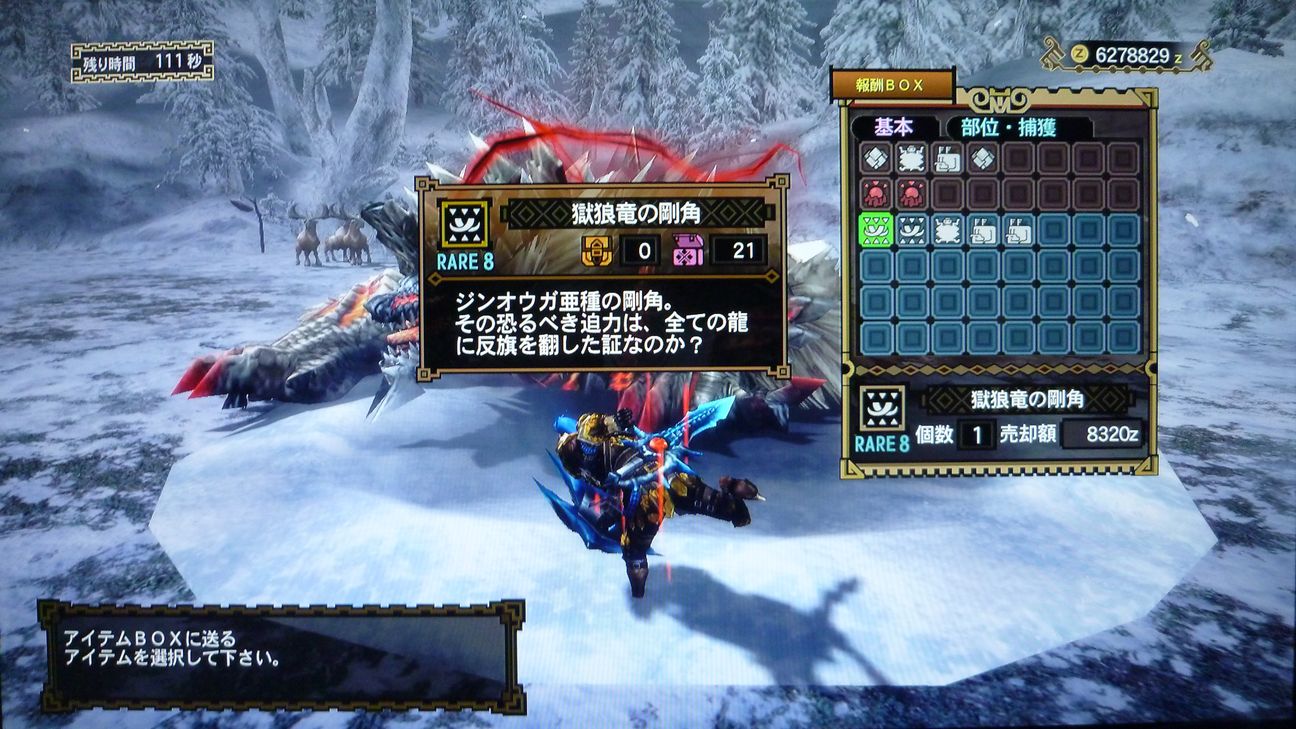 …と捕獲した後の画像でありますが、剥ぎ取り前後がちょうどジンオウガのターンに
