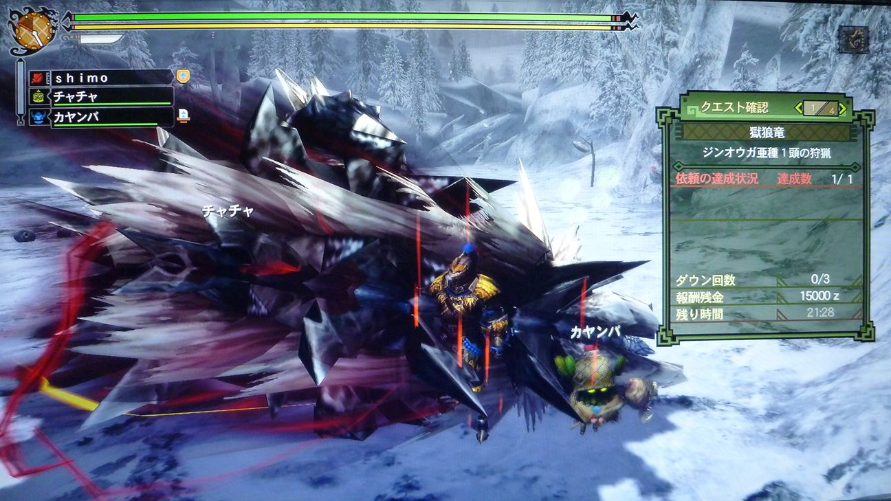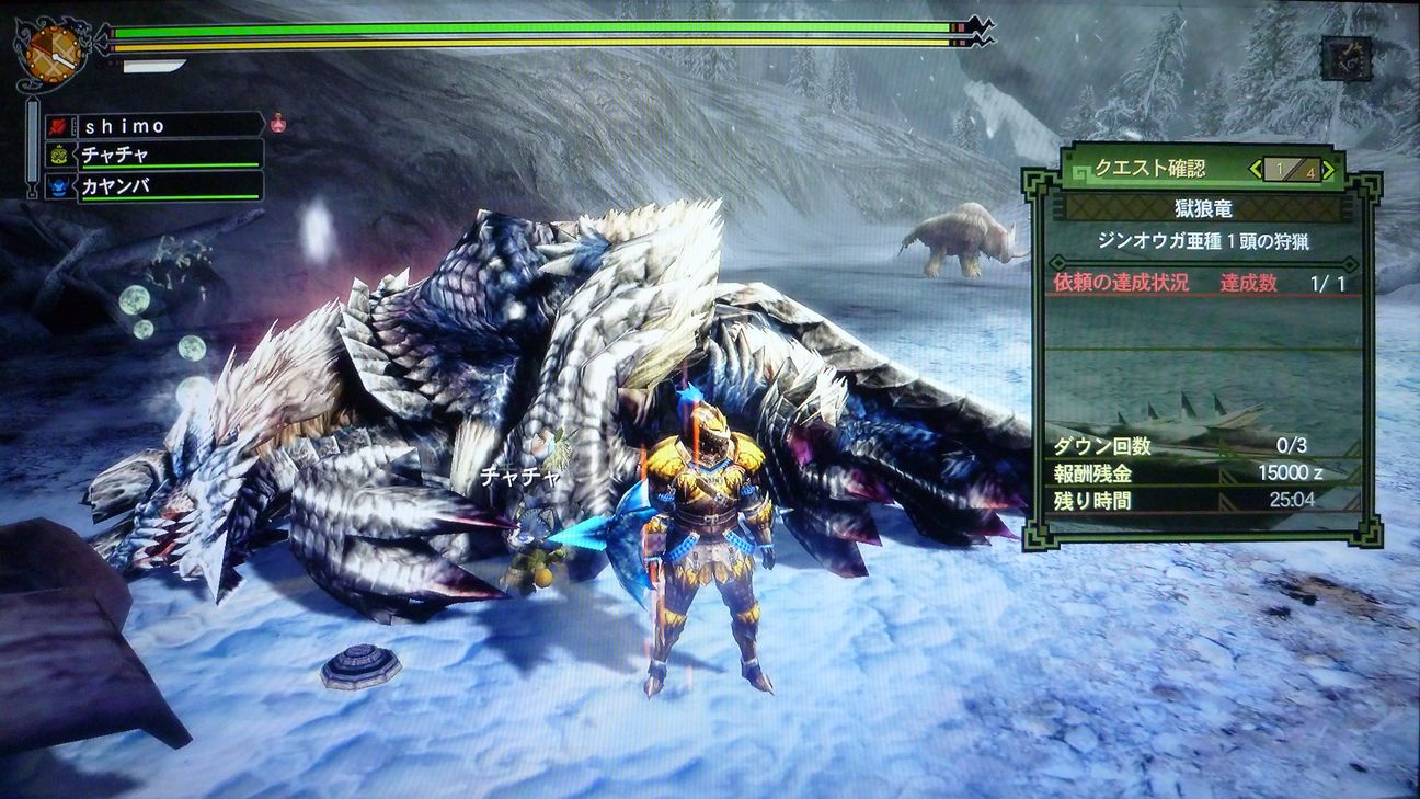 ジンオウガ亜種狩猟中です。