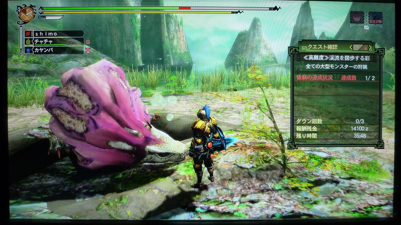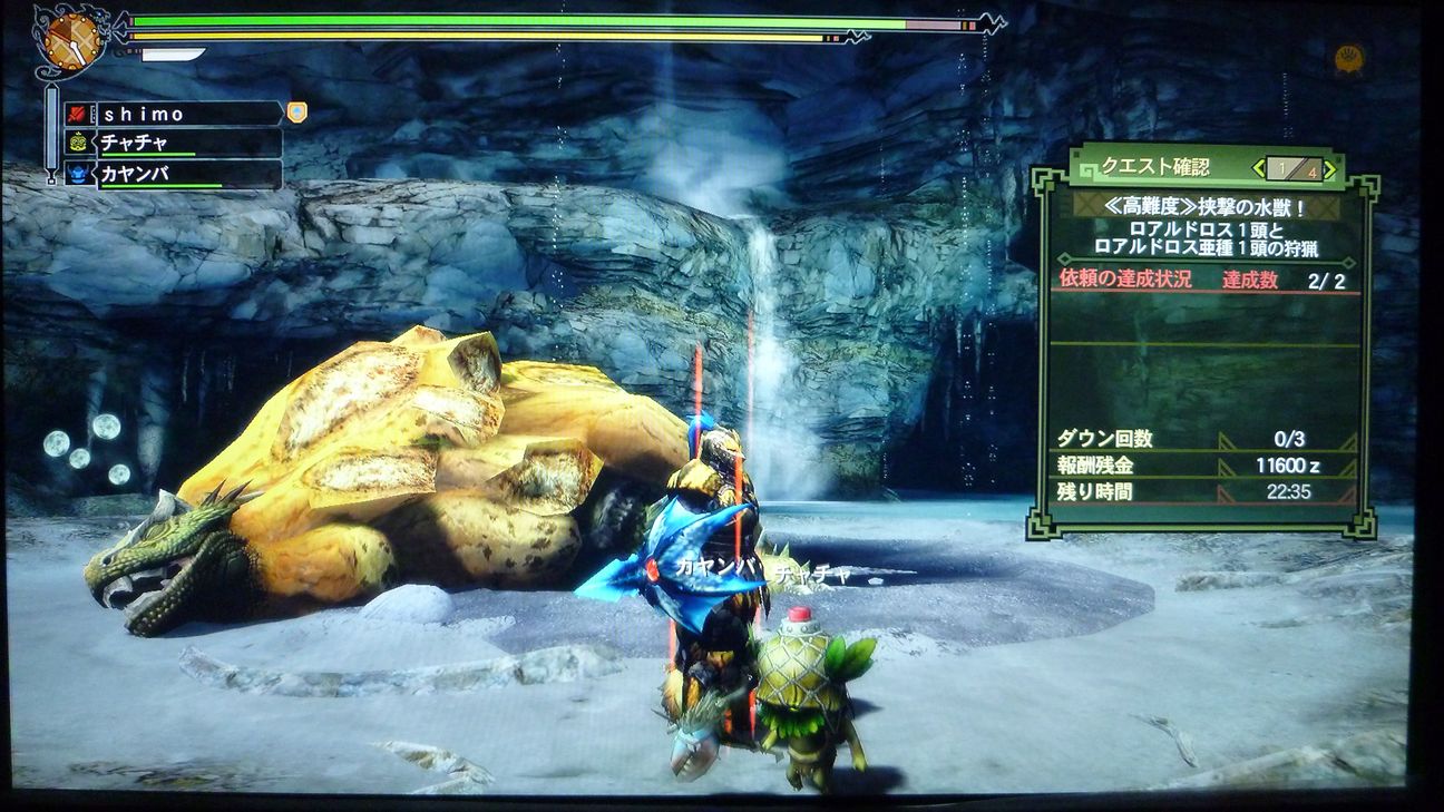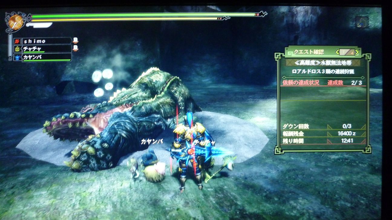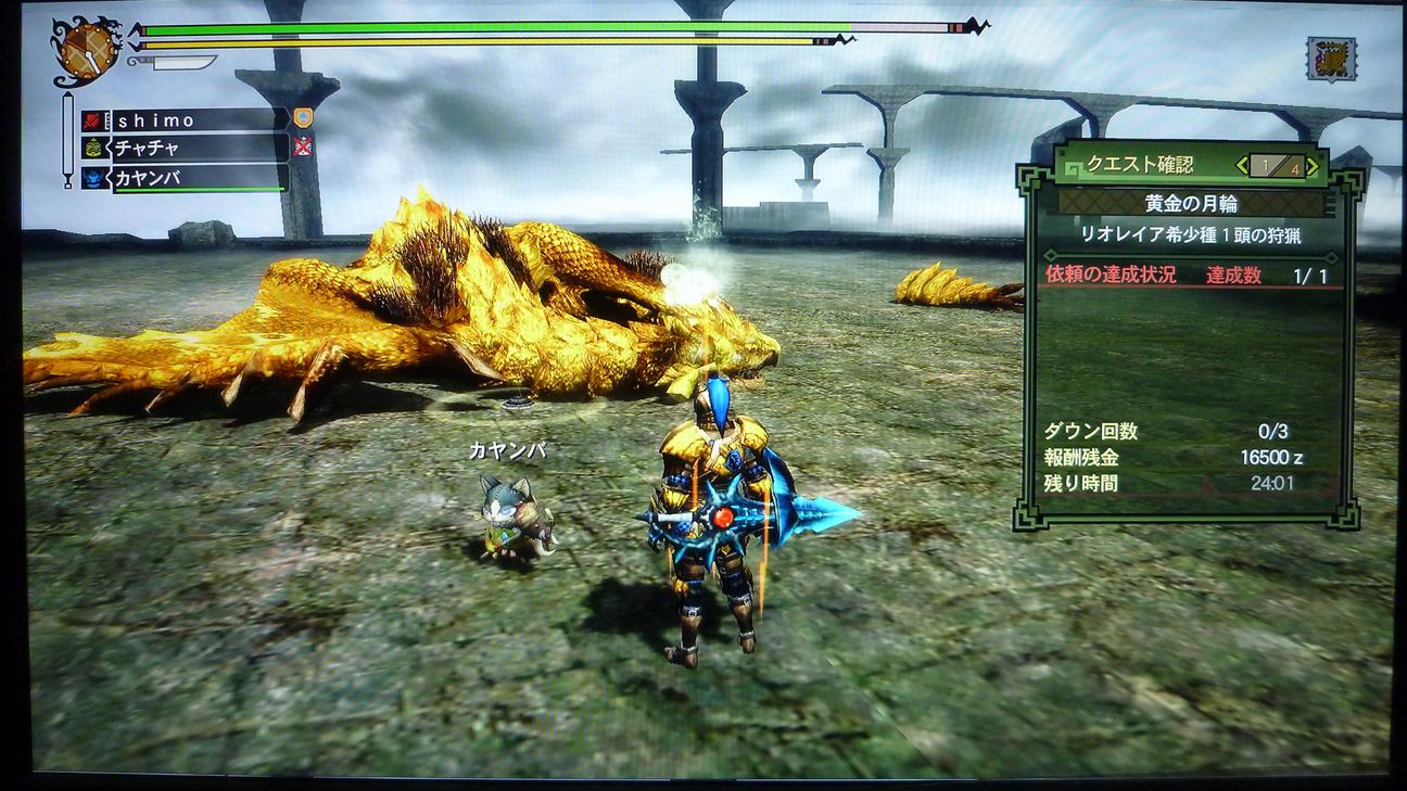 ブレスもらって、「あぁ、今日はさすがにダメかも」と愚痴をこぼしながら、まずは片方狩猟。