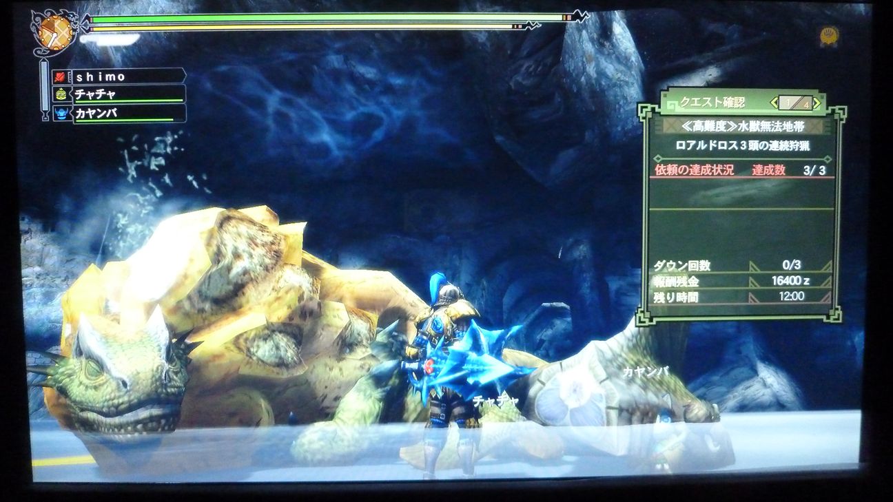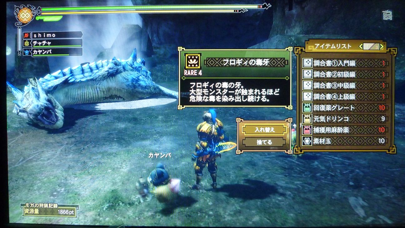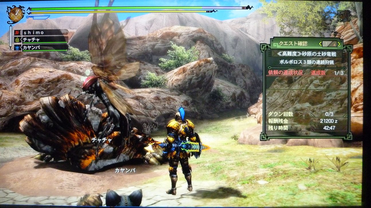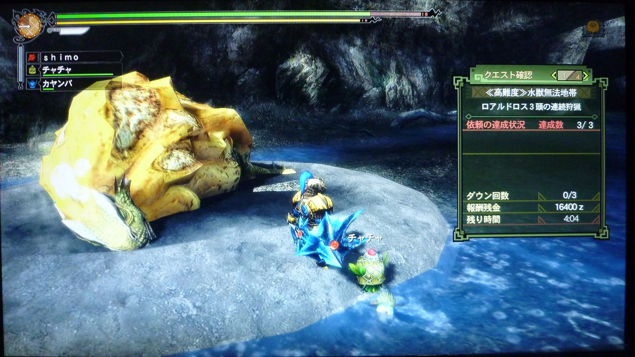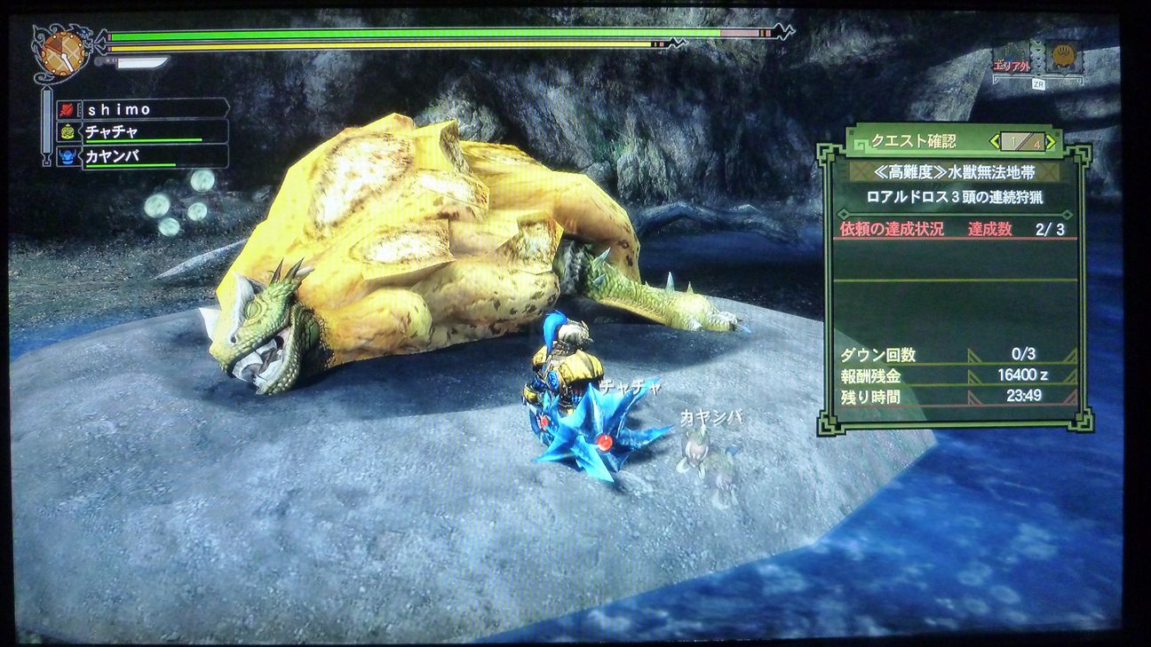 ブレスもらって、「あぁ、今日はさすがにダメかも」と愚痴をこぼしながら、まずは片方狩猟。