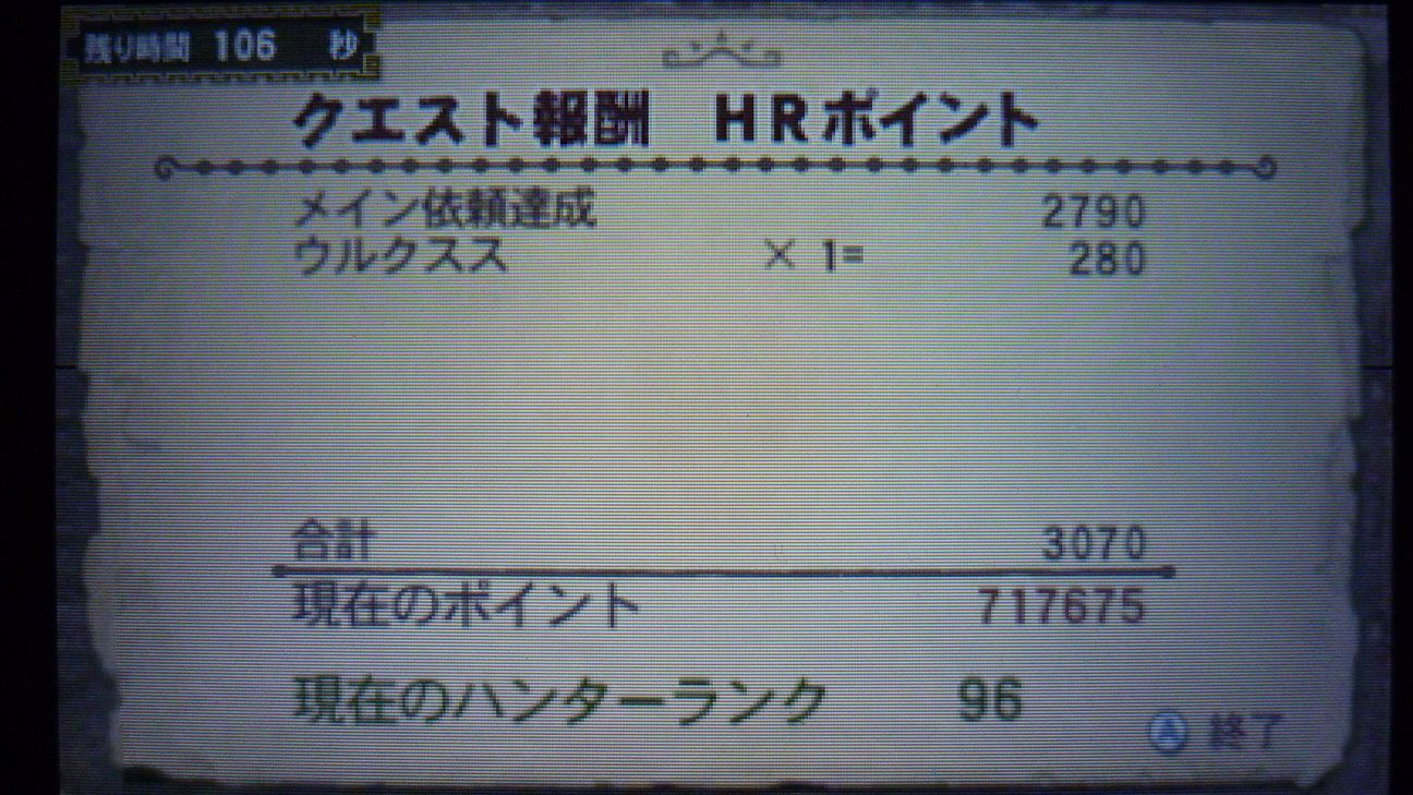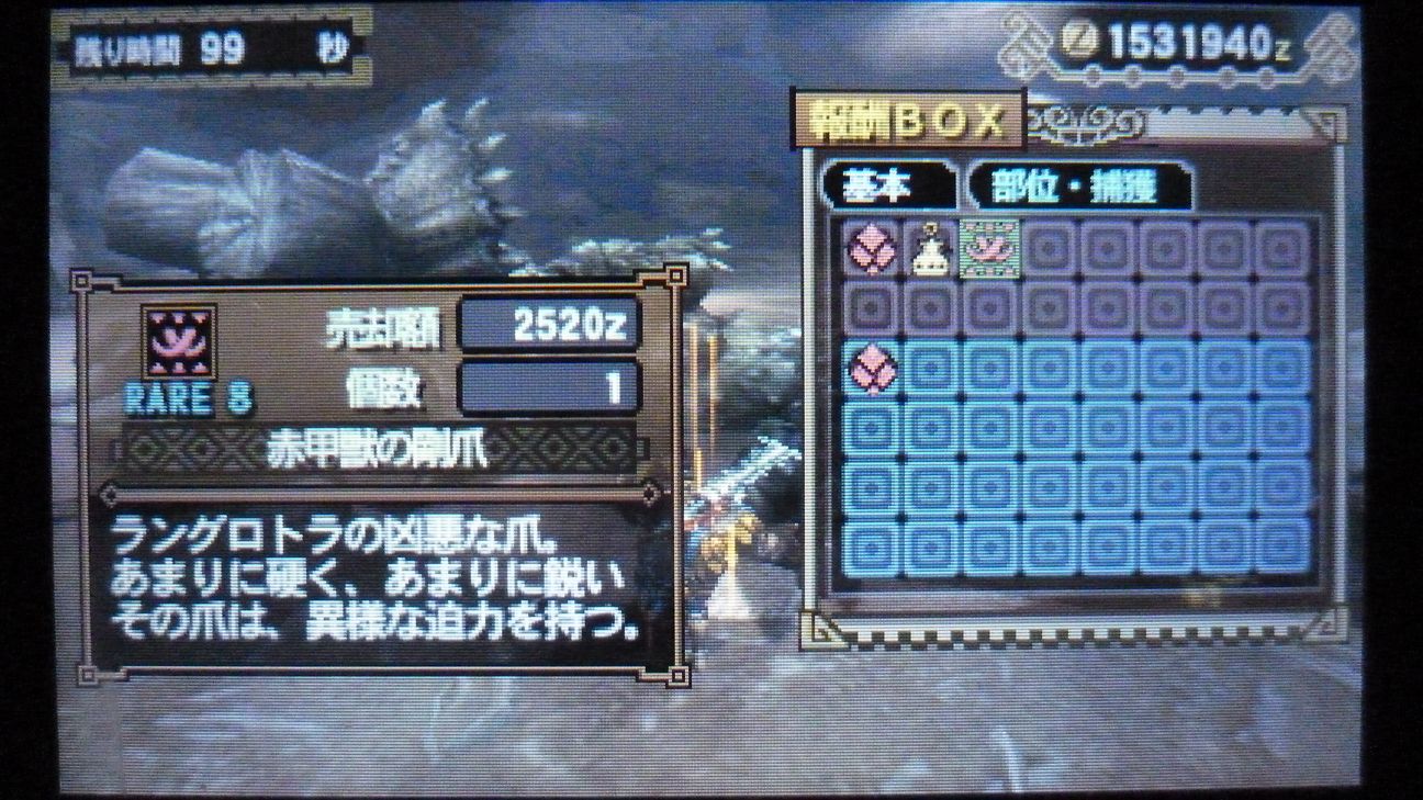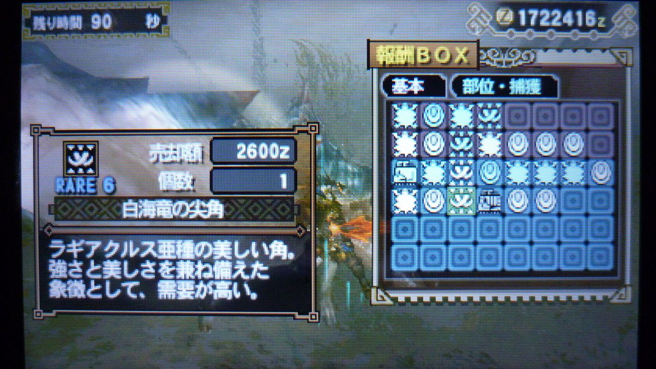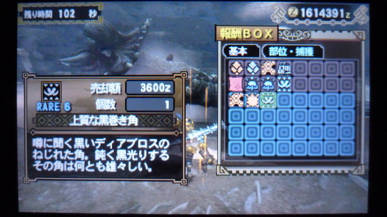 今回に限れば、まぁこんなものかと。でも、それならミラオス狩りまくっても…たしか出たはず。