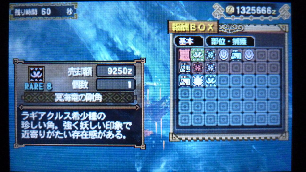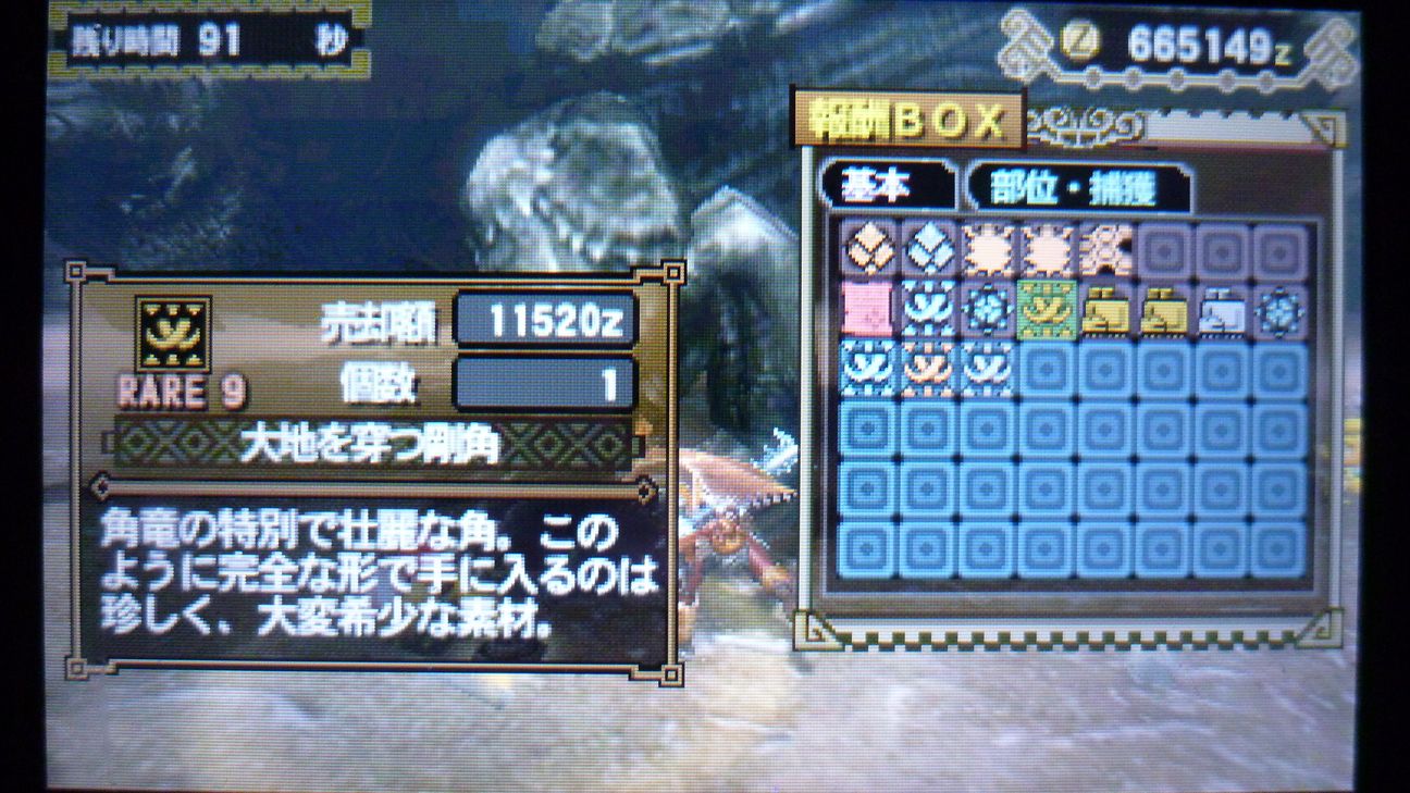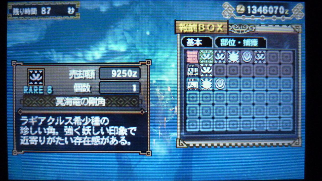 回復薬G2個のところで捕獲完了。残り時間は…18分!
