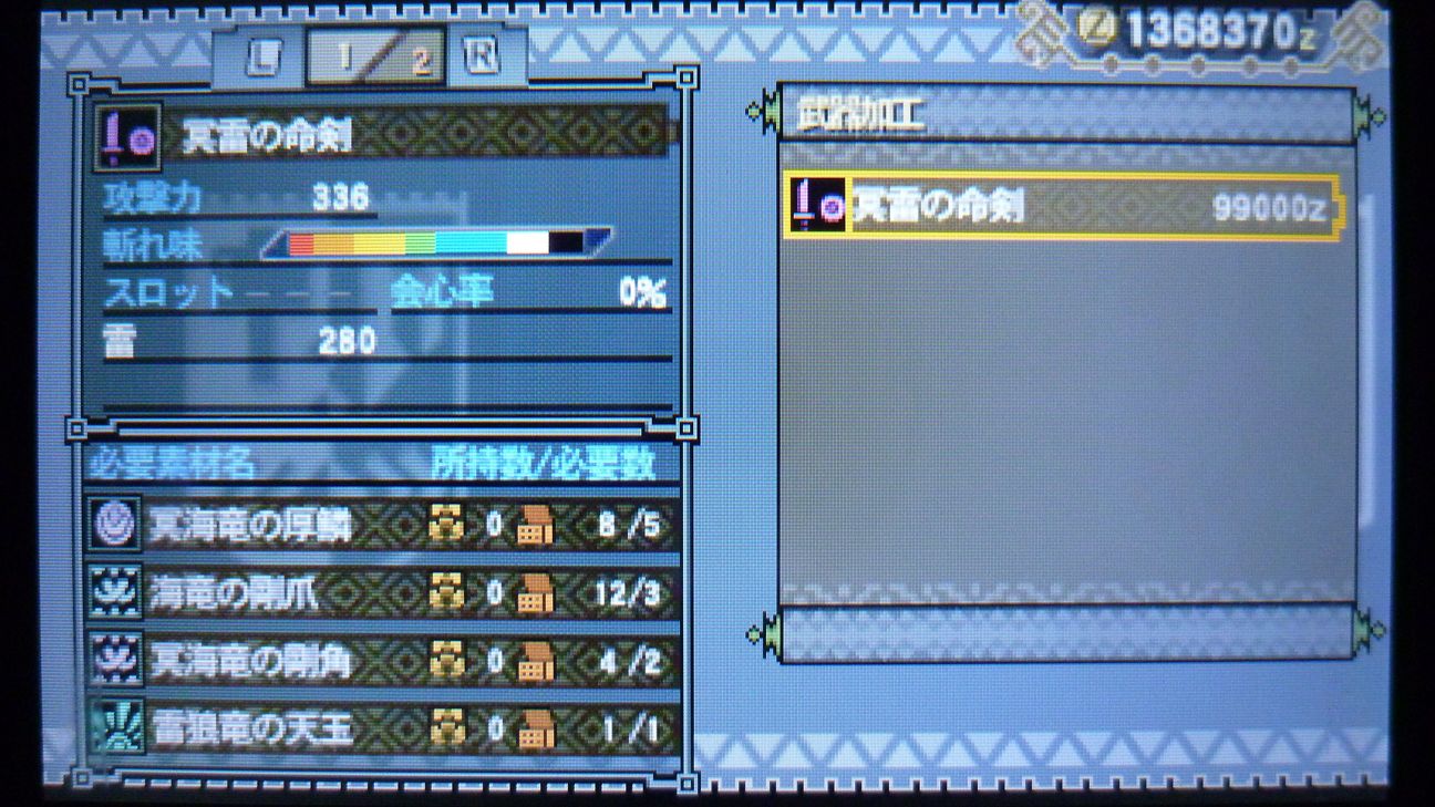 効率は上がりましたね。肉質固い敵にはもってこいの武器です。