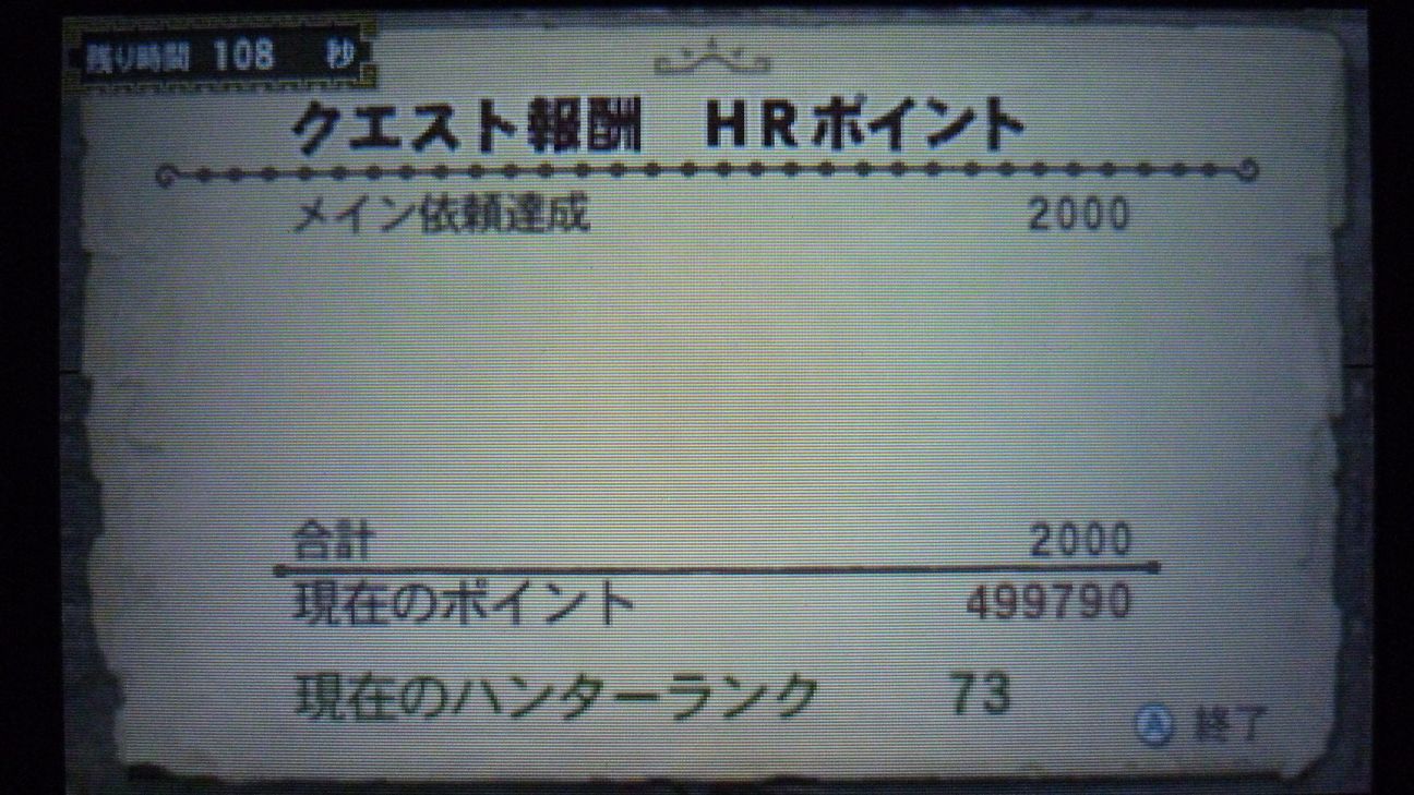コイツ自体狩るの久しぶりだったので、まぁいろいろと鈍ってしまった感が…、