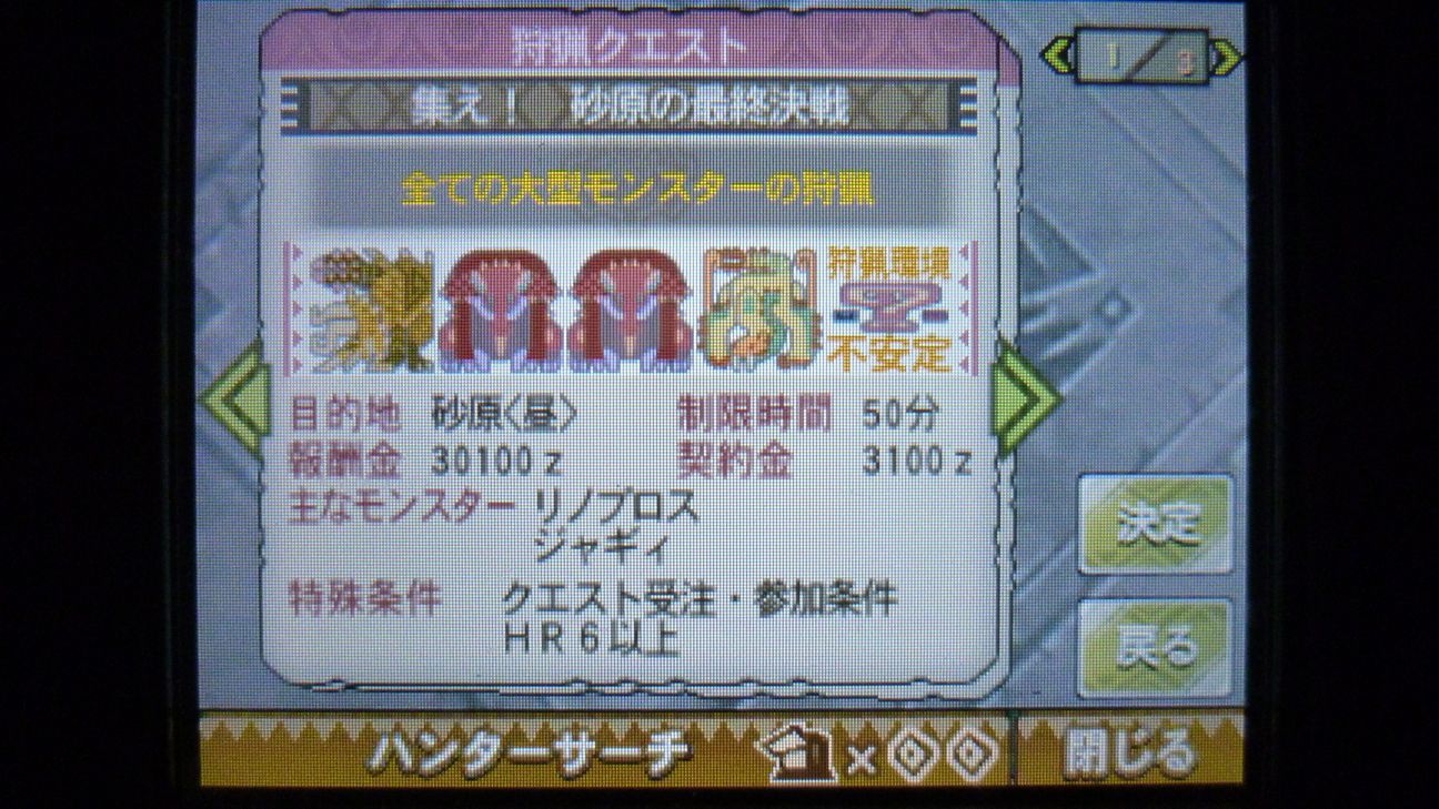 - 3DS/Wii U・モンスターハンター3Gプレイ記|