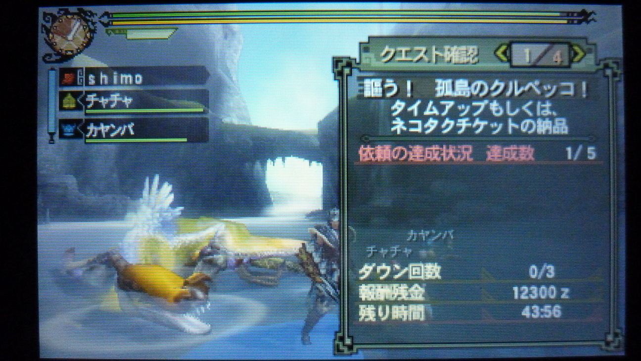 2頭以上狩猟でネコタク納品でクリアできるクエですが。実質5頭連続狩猟という鬼畜クエ。