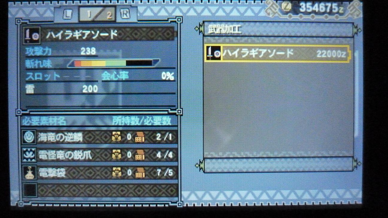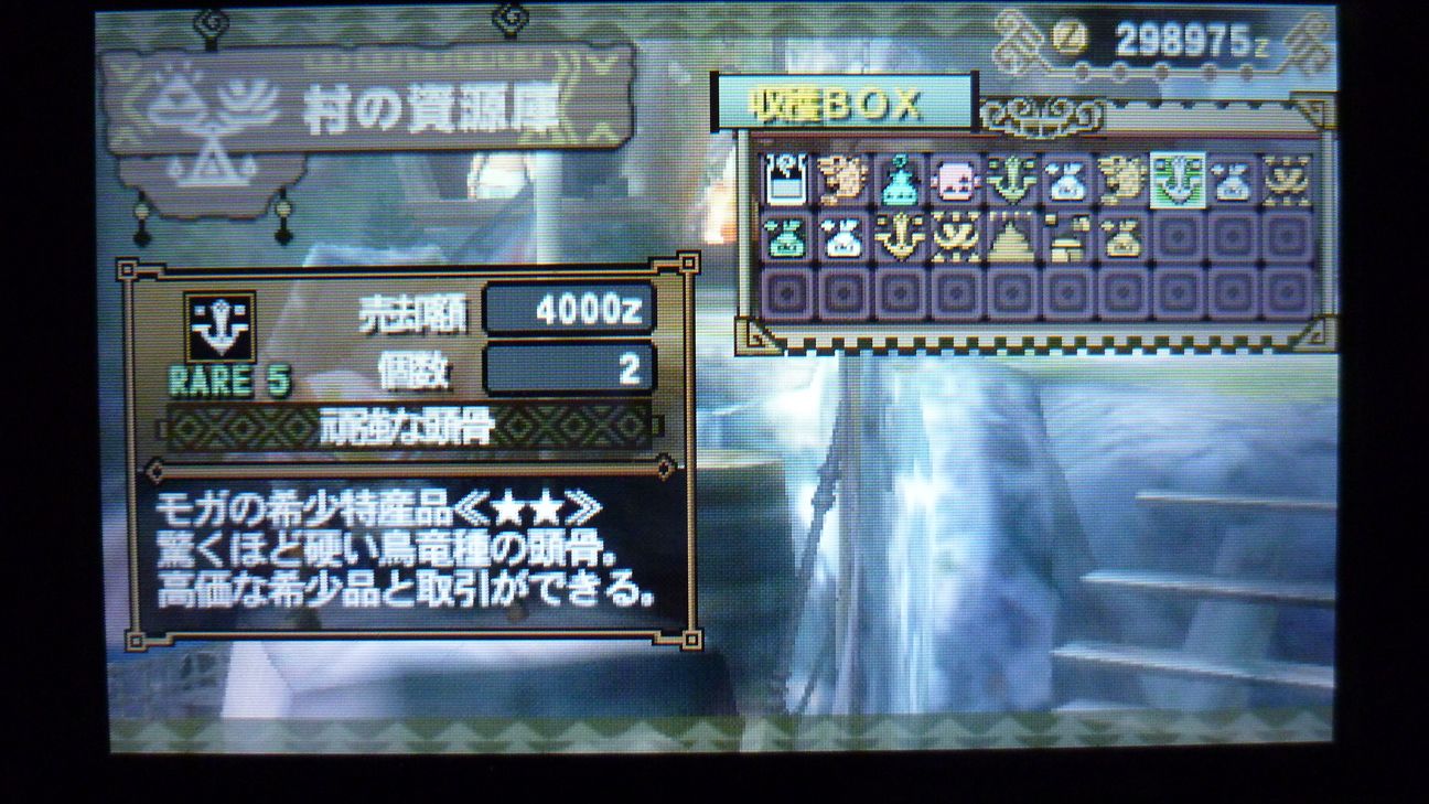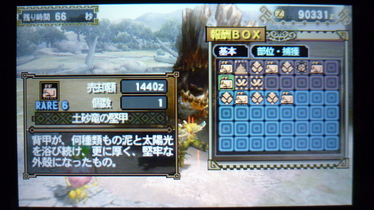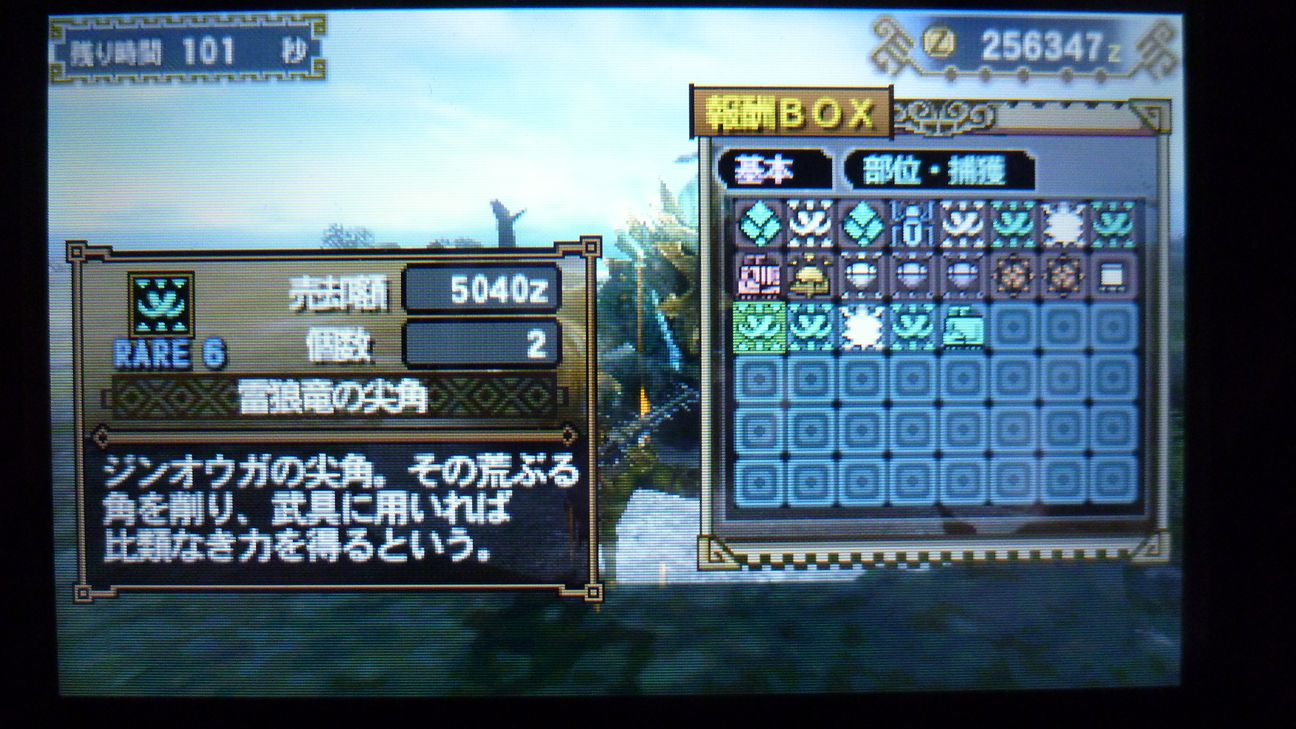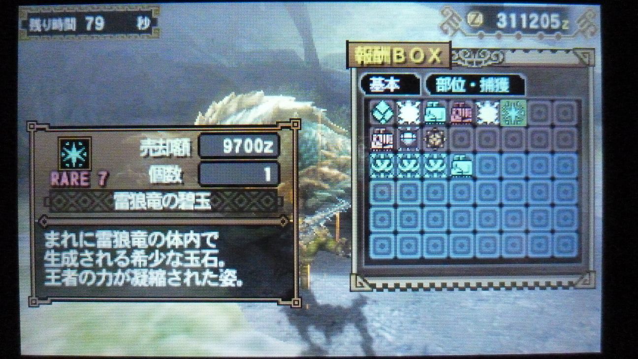 あとで武具屋行ったら、ジンオウガ武器がラインアップに載ってましたが…堅殻が足りない!