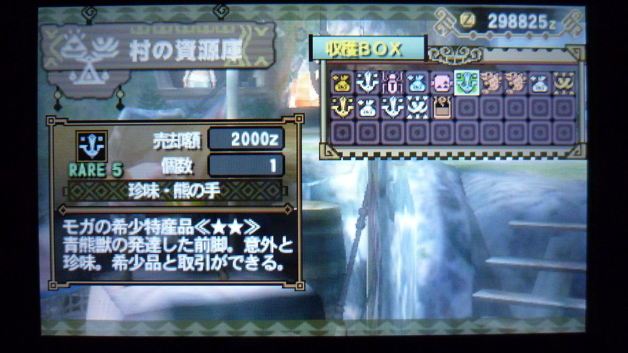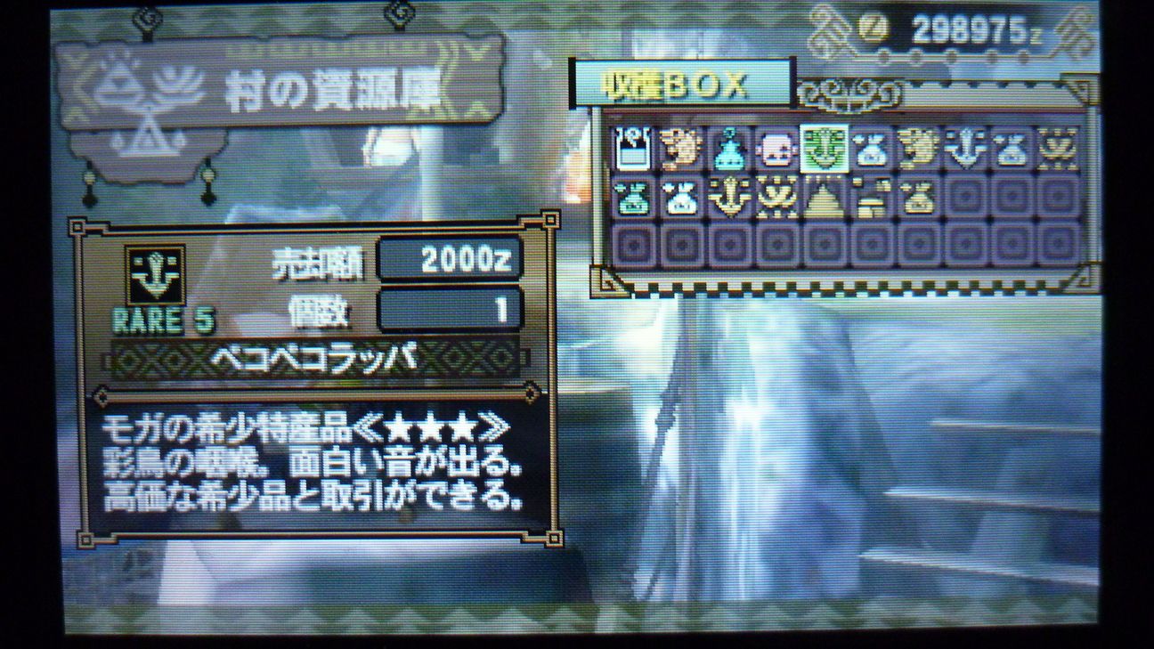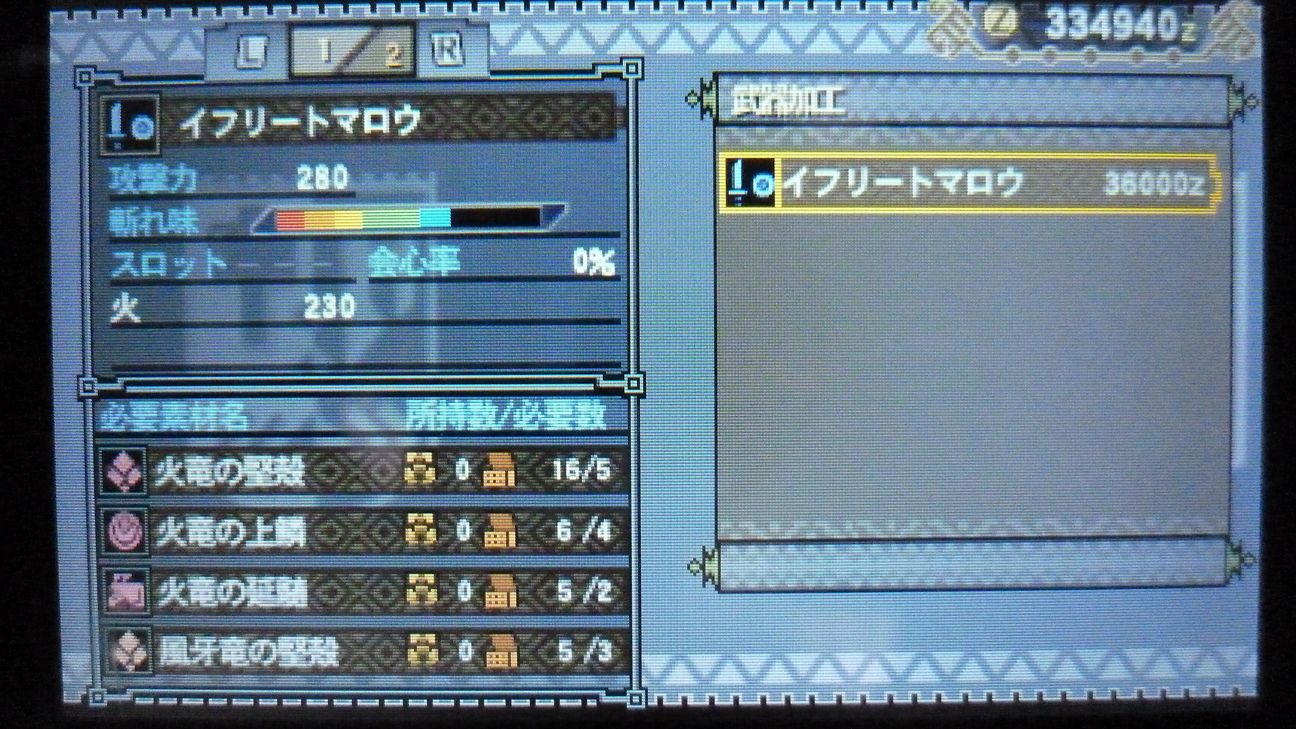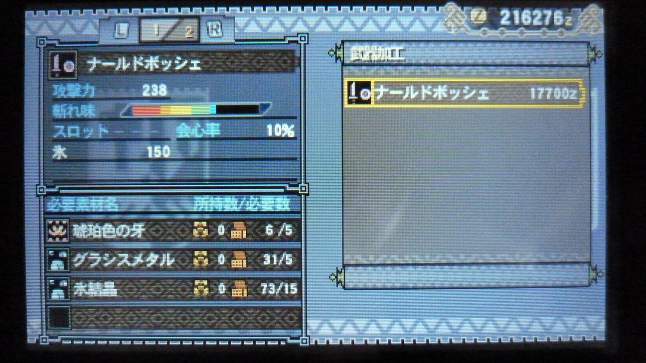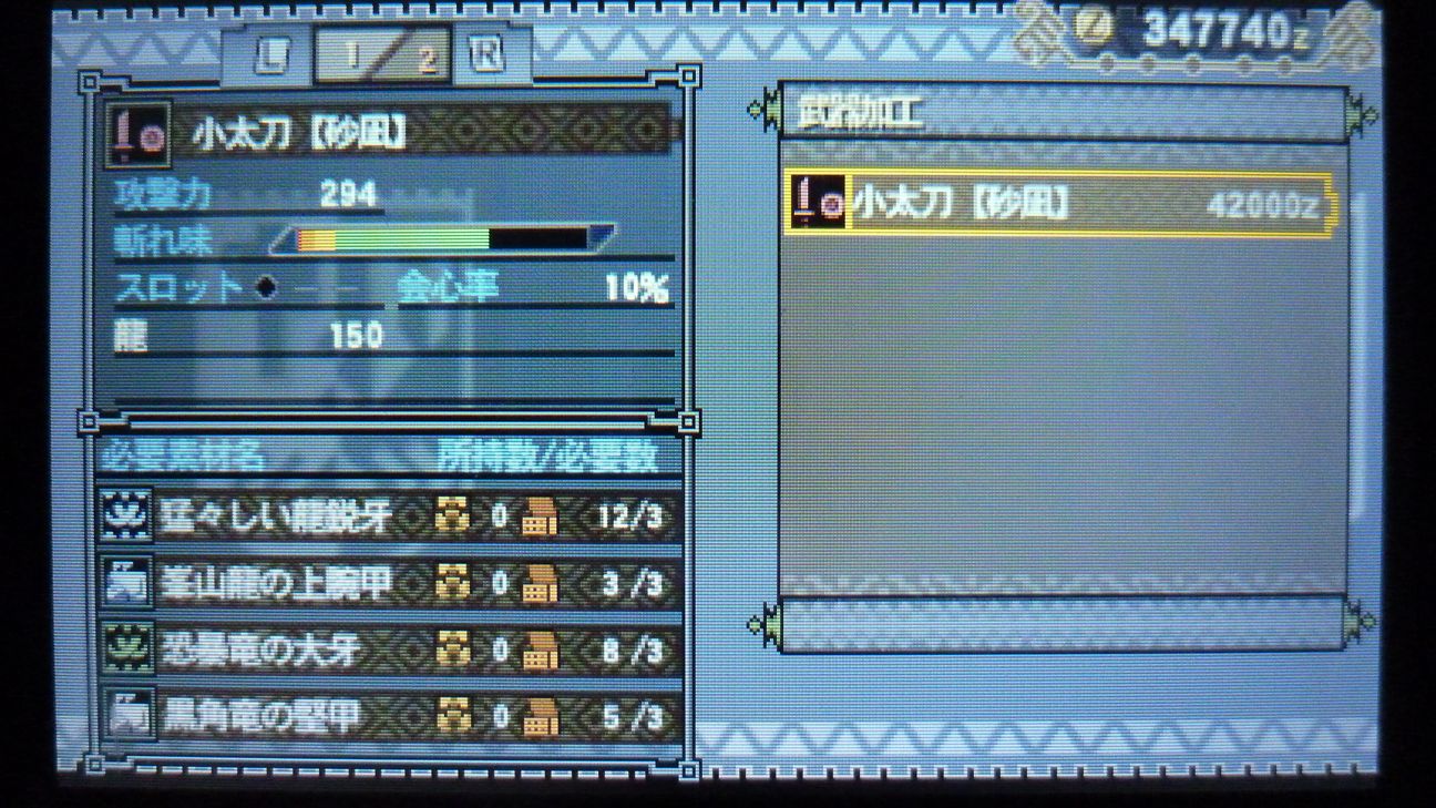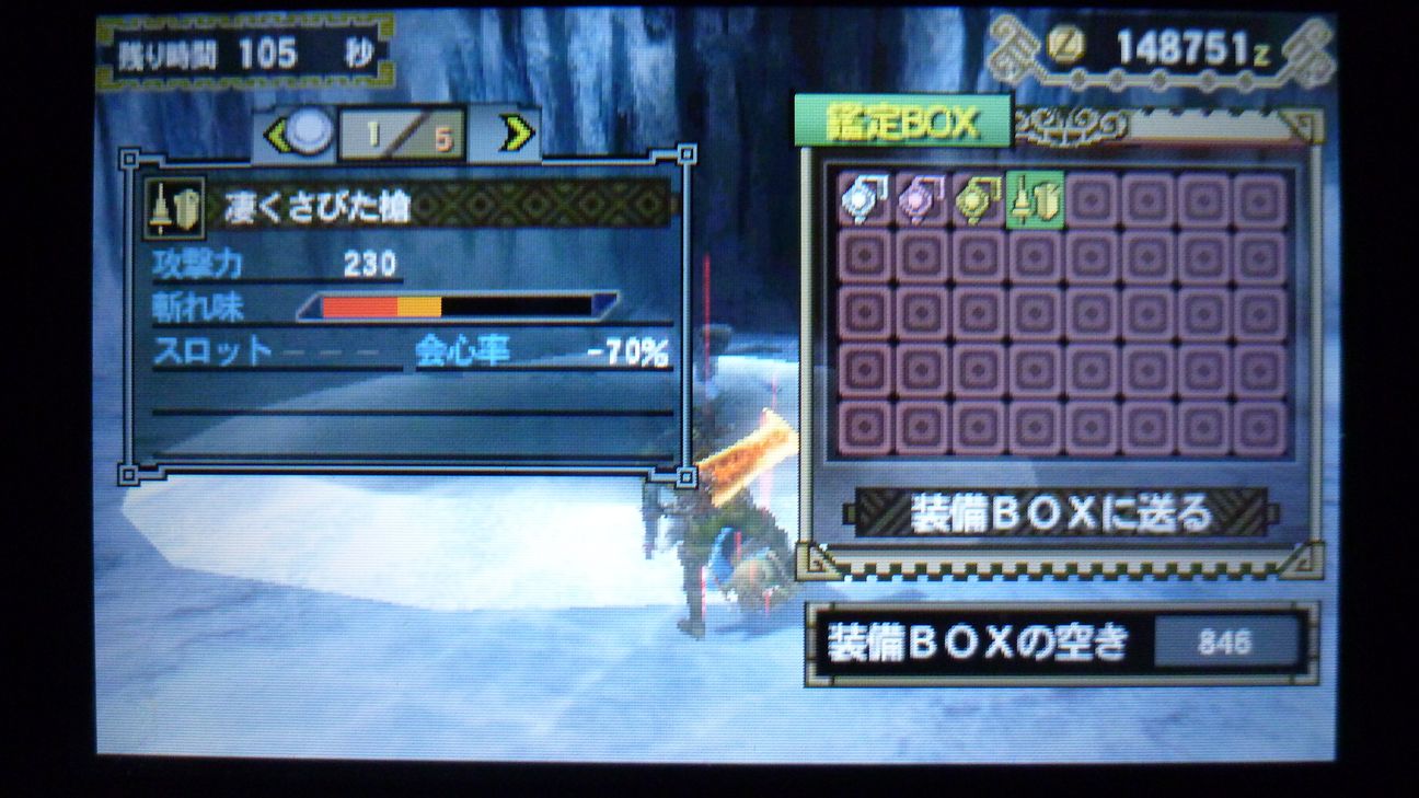 あとで武具屋行ったら、ジンオウガ武器がラインアップに載ってましたが…堅殻が足りない!