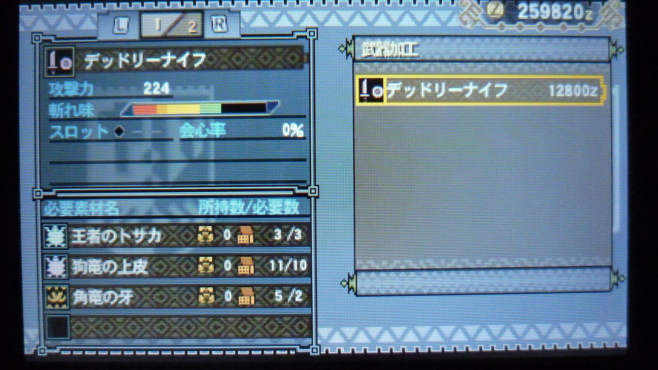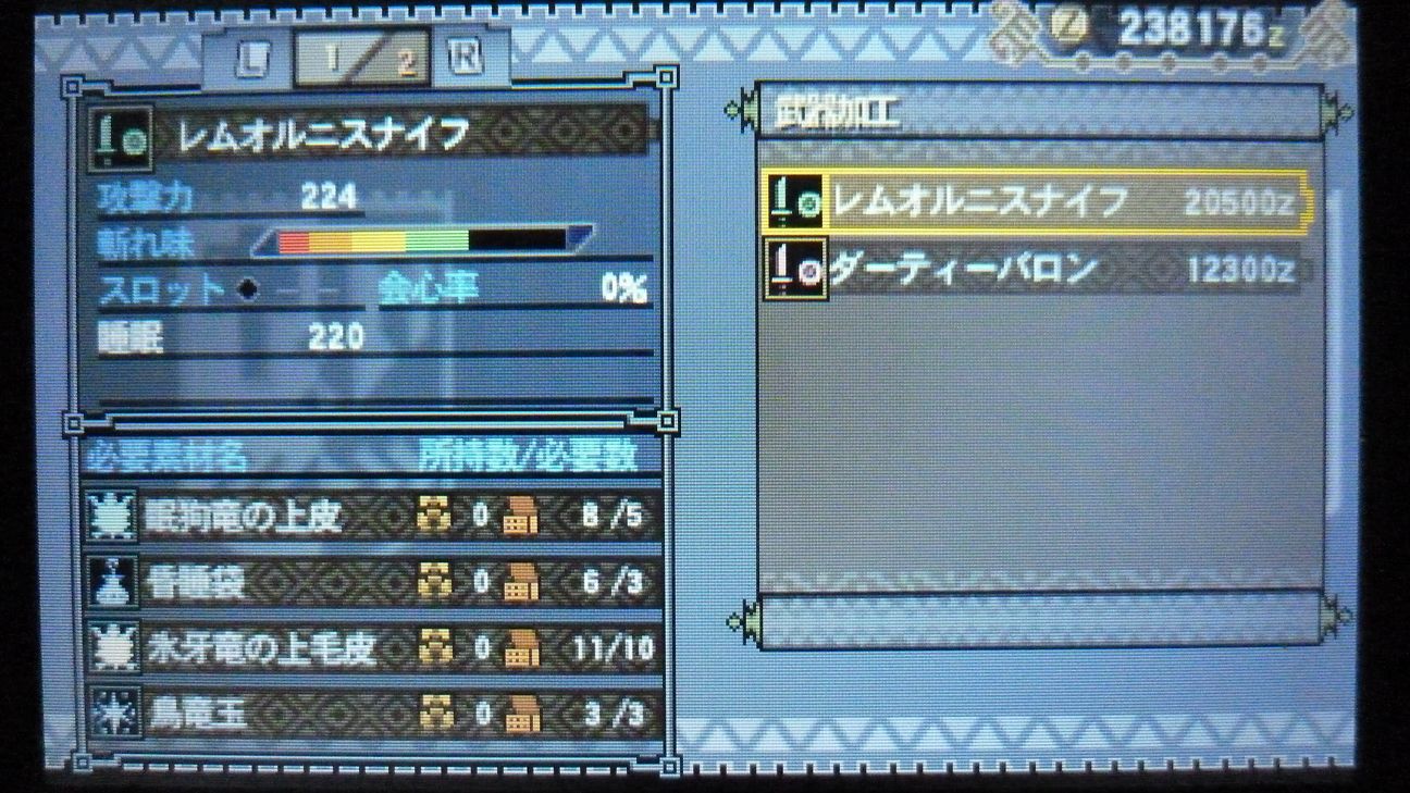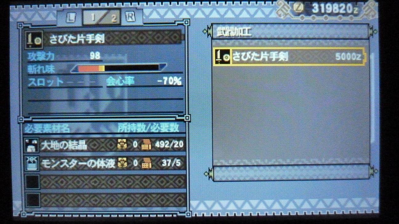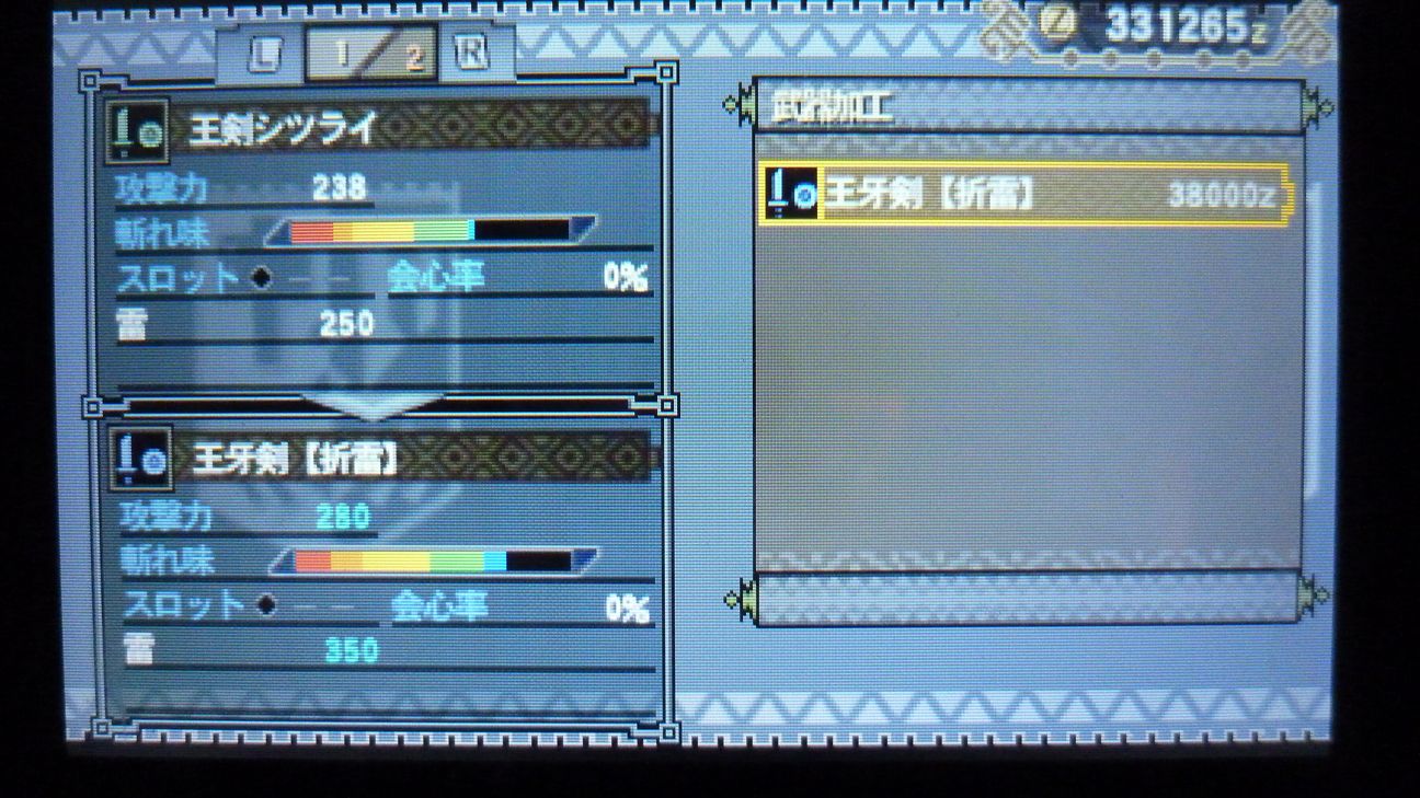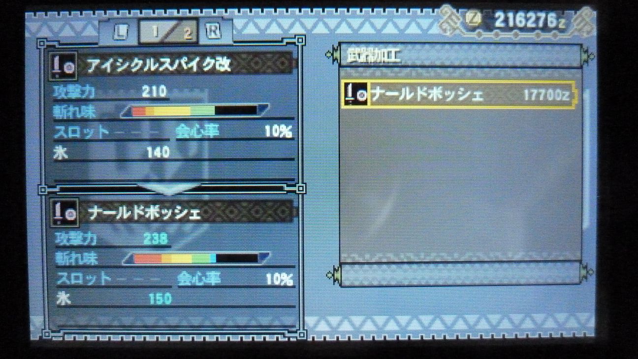 あとで武具屋行ったら、ジンオウガ武器がラインアップに載ってましたが…堅殻が足りない!
