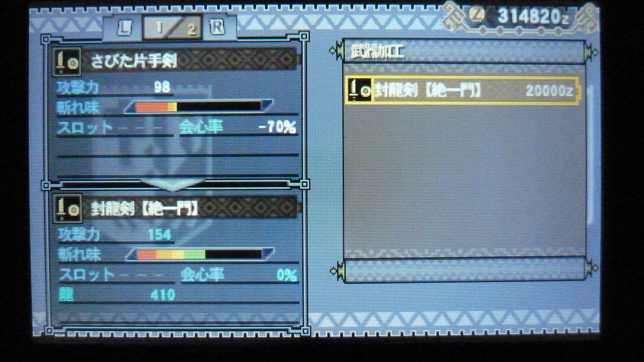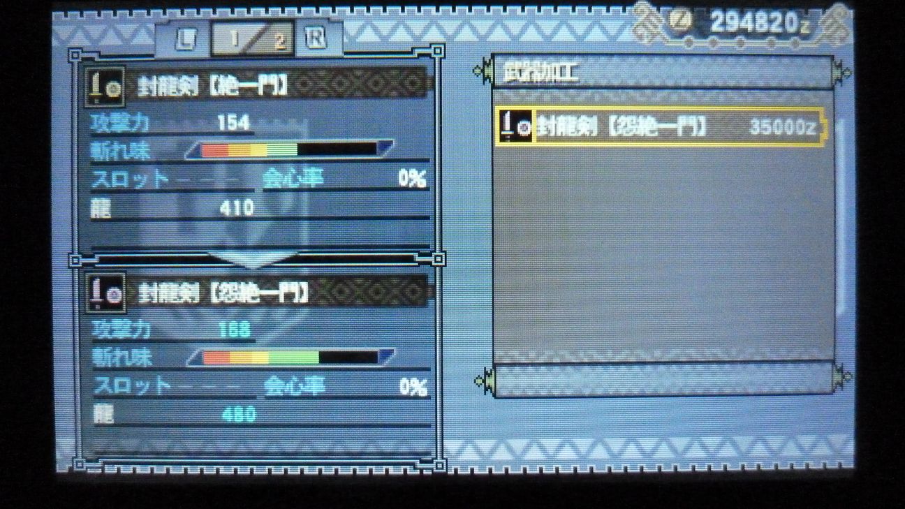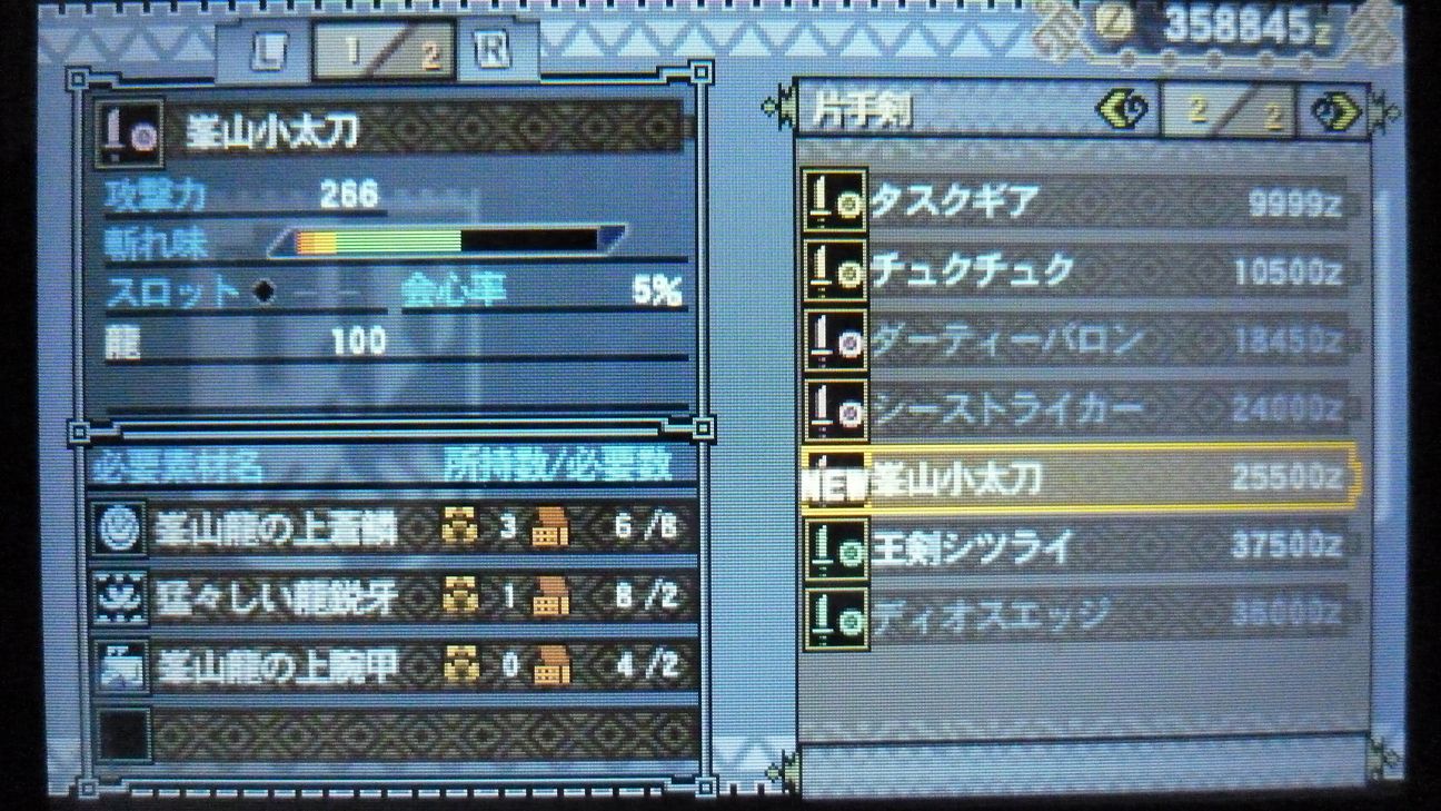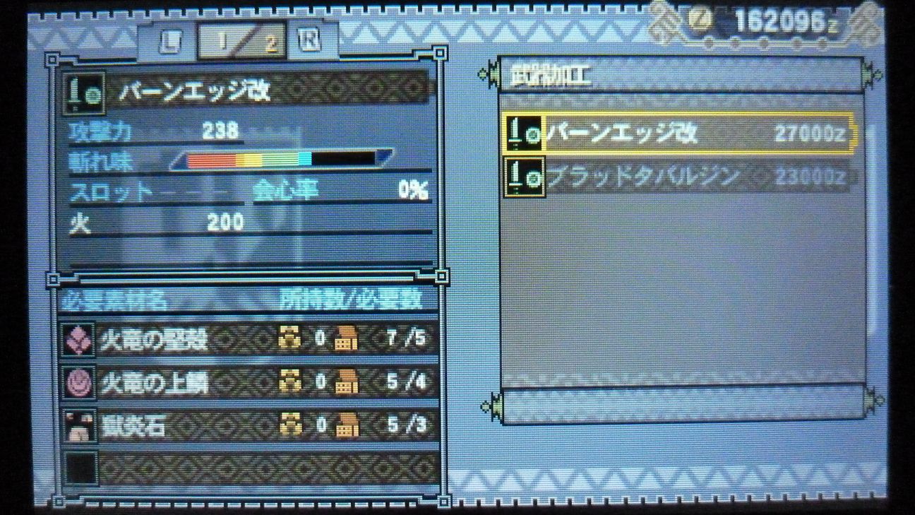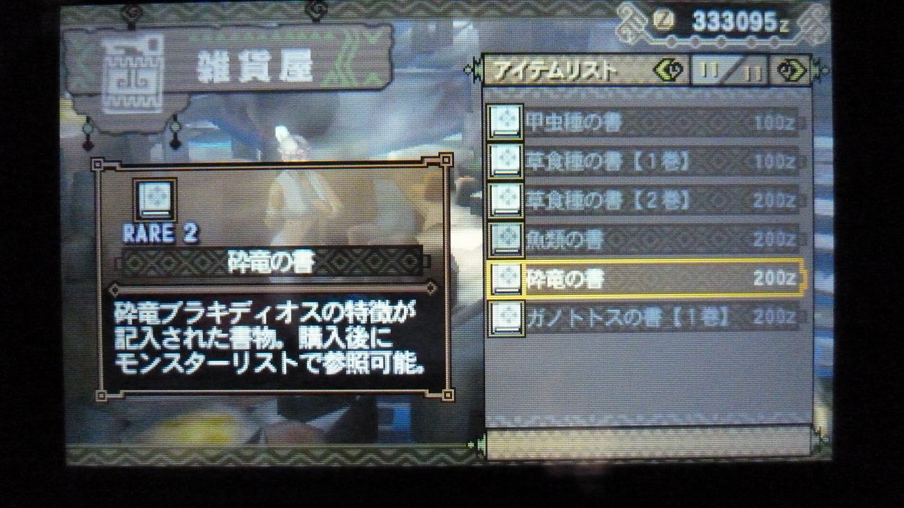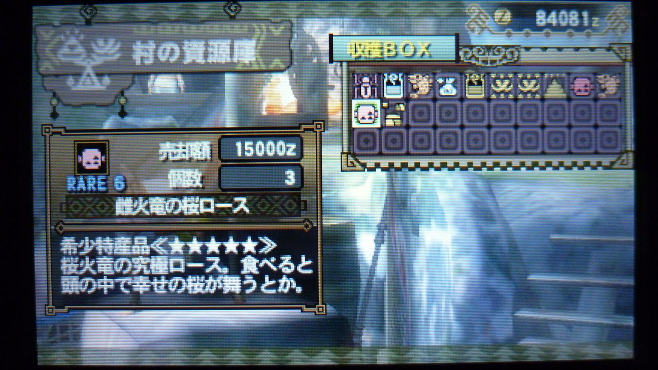 あとで武具屋行ったら、ジンオウガ武器がラインアップに載ってましたが…堅殻が足りない!