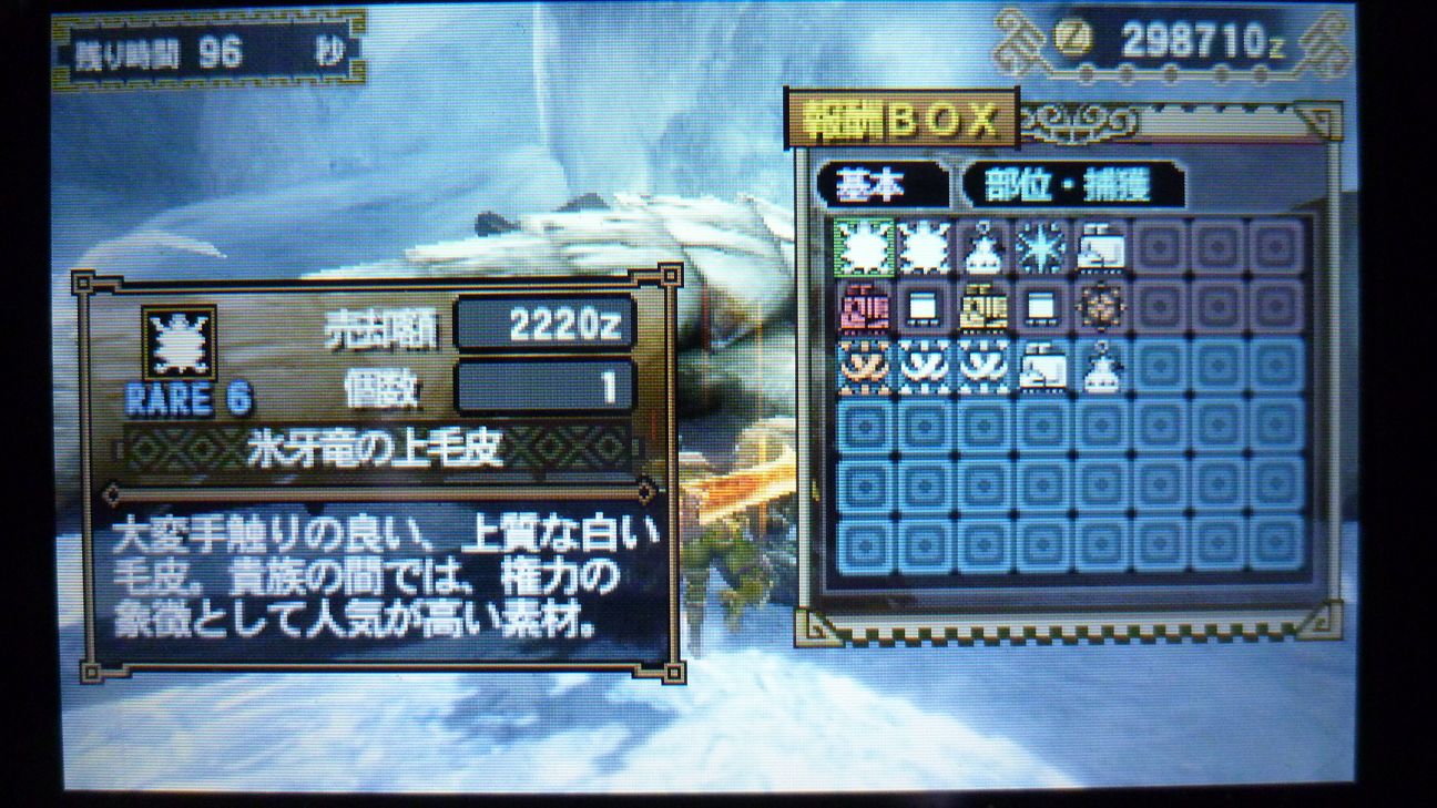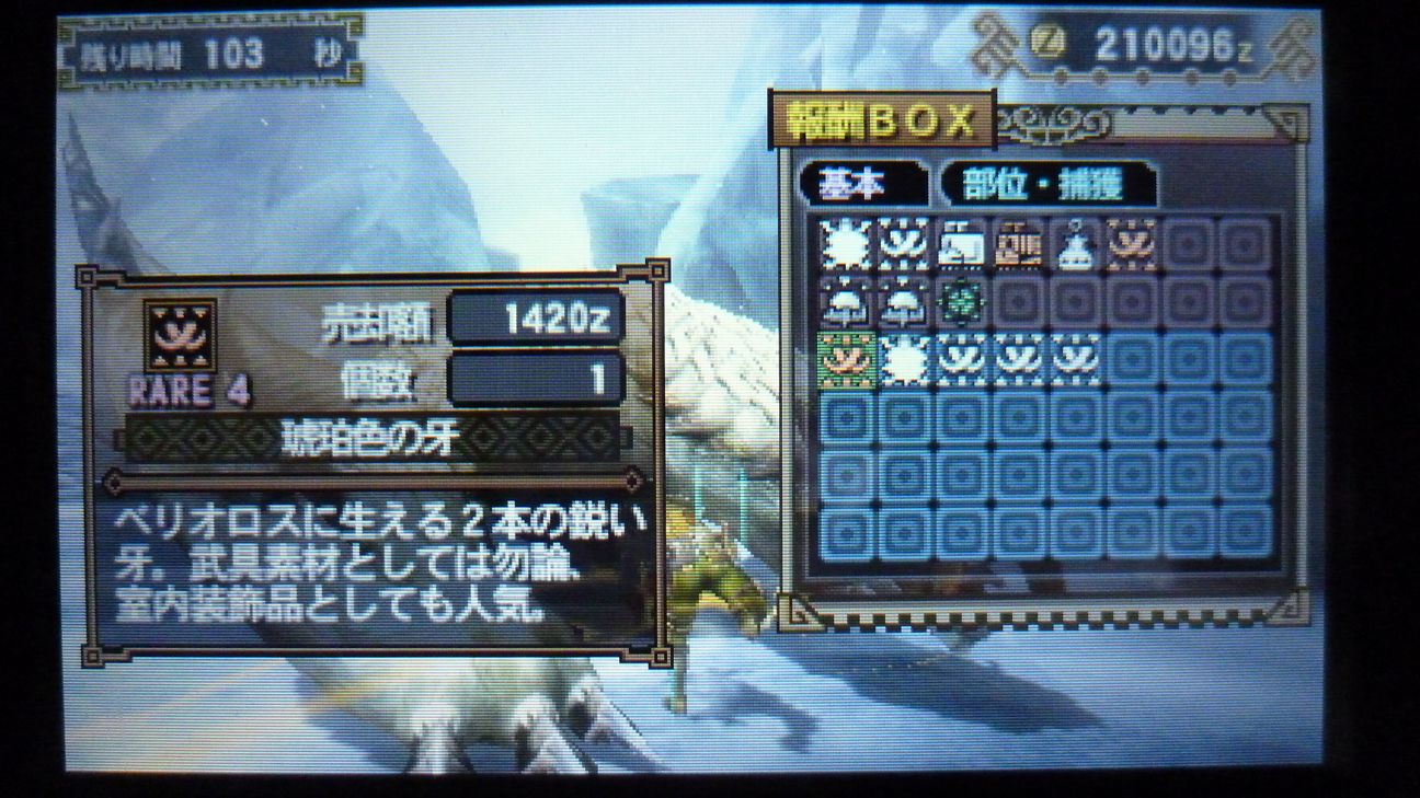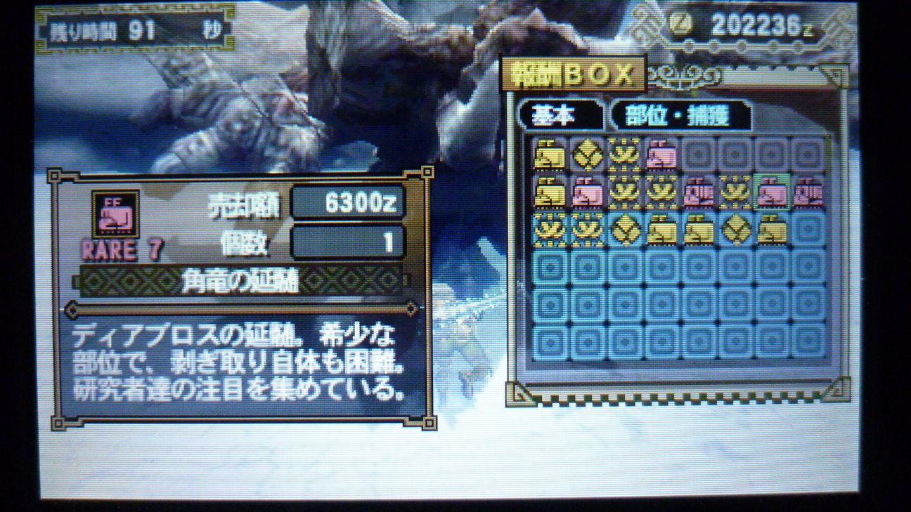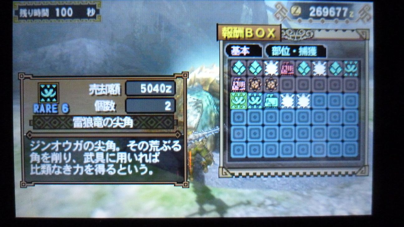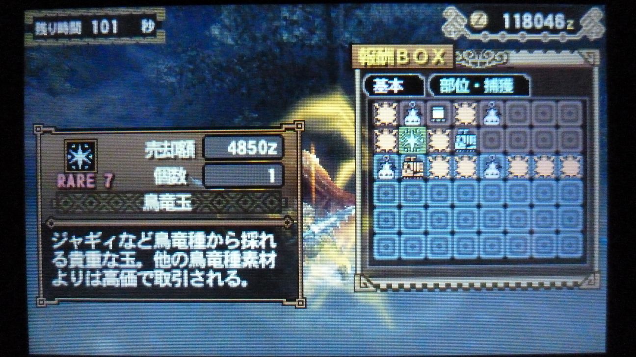 爪が…あと1個でラギア武器強化できるんだが…ジンオウガ武器作ったので今じゃなくてもいいか。