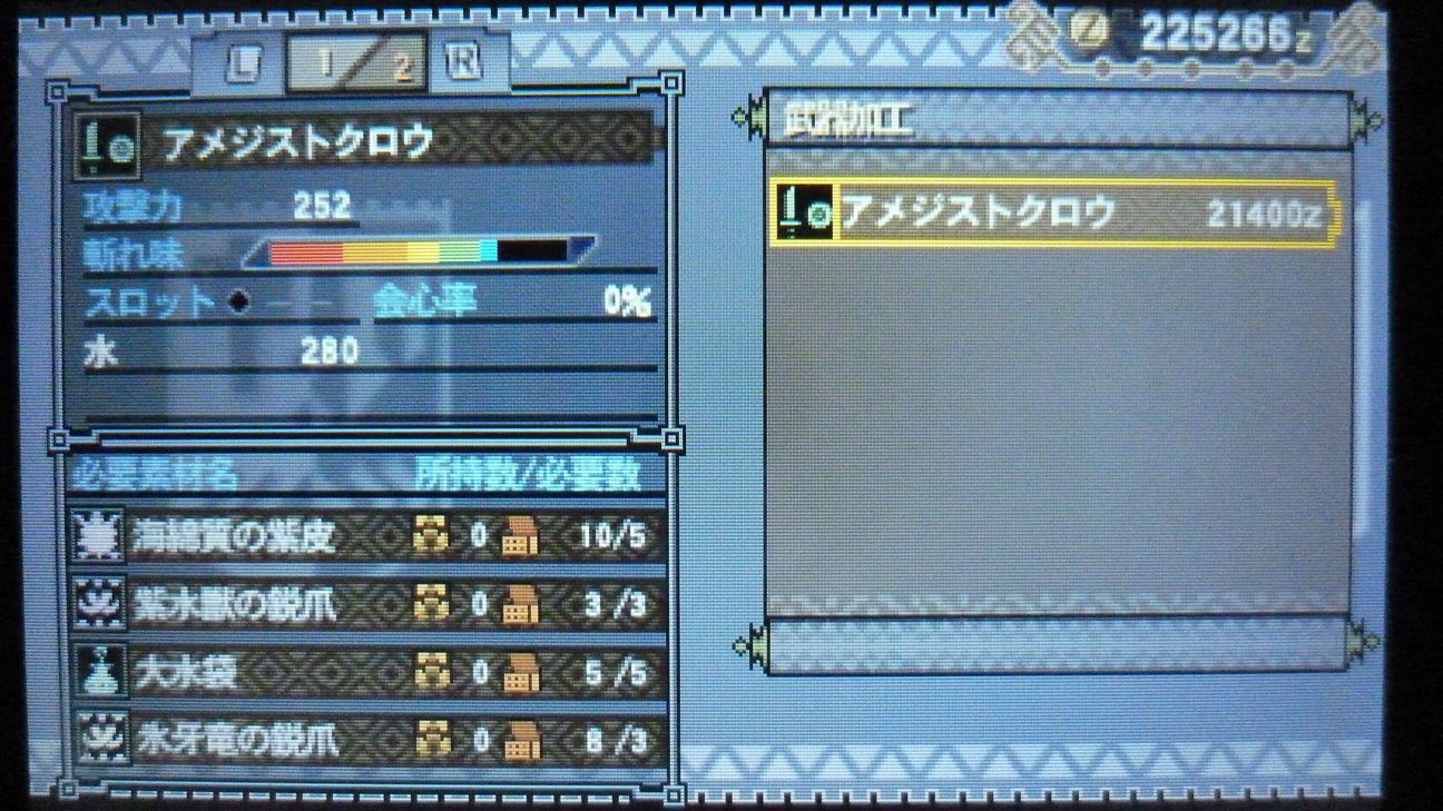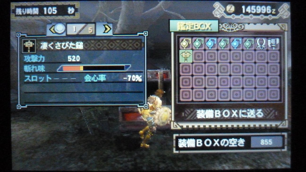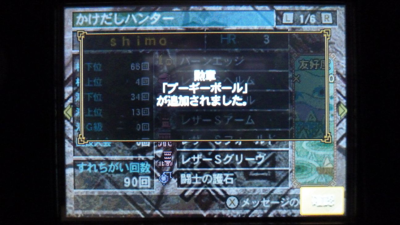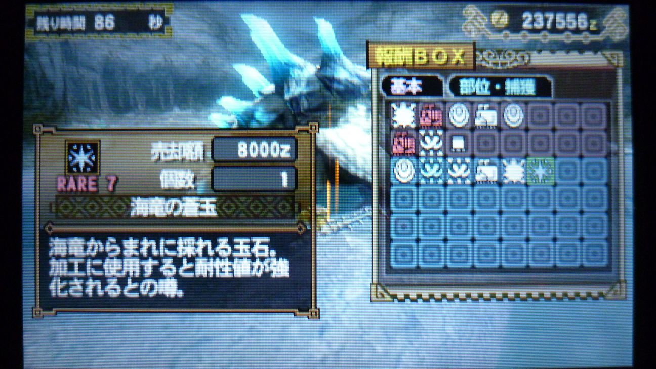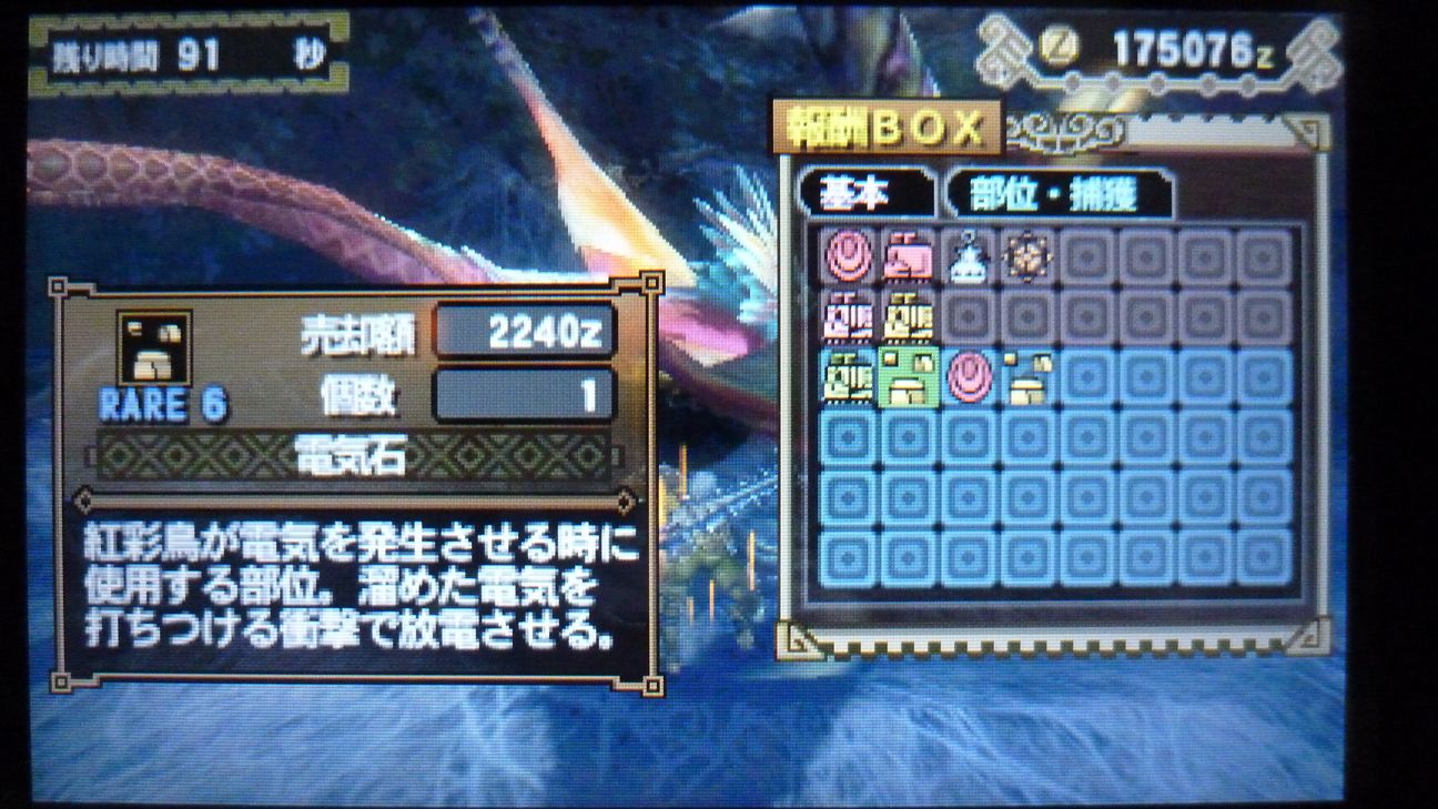 爪が…あと1個でラギア武器強化できるんだが…ジンオウガ武器作ったので今じゃなくてもいいか。