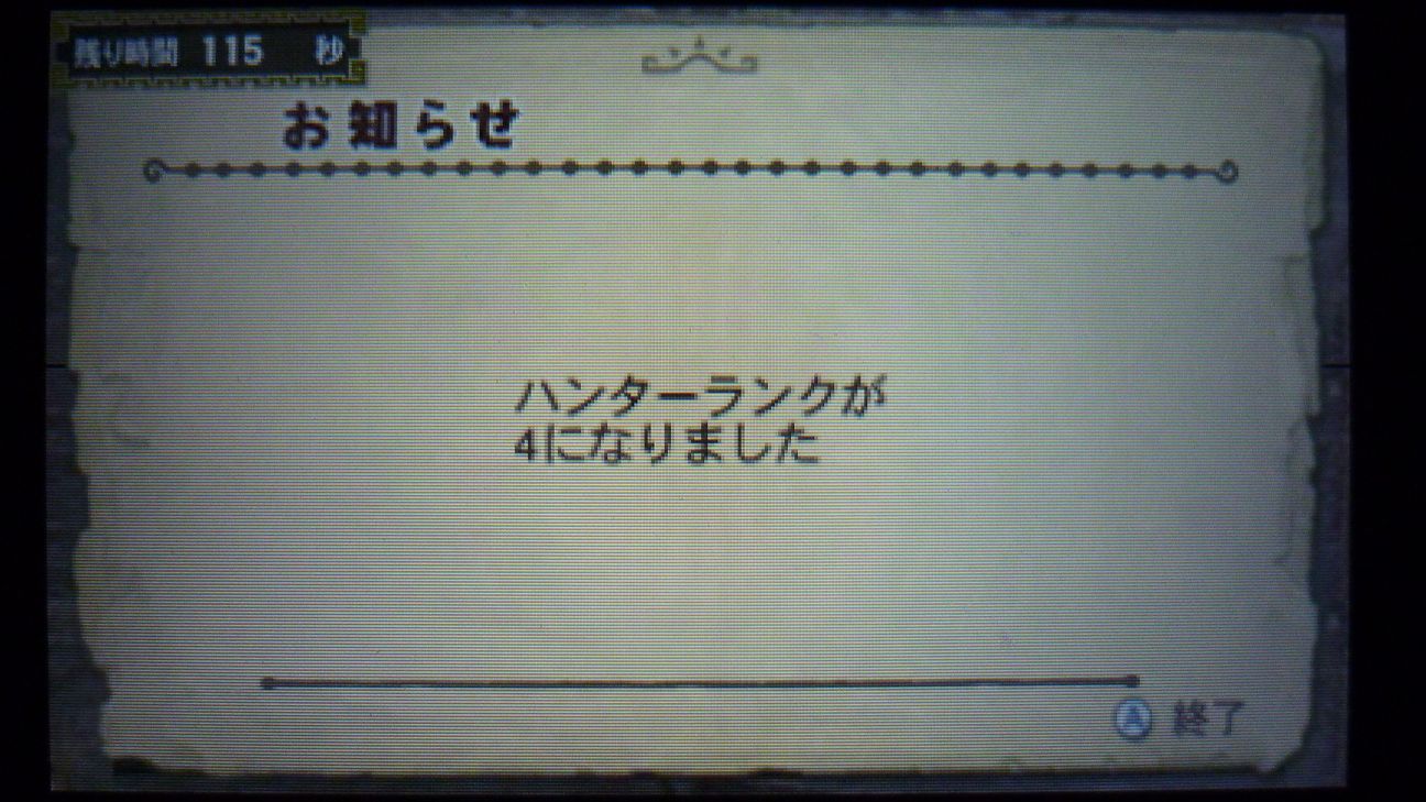 武器も上位向けにかなり充実してきたところで、そろそろハンターランクも上げたい…
