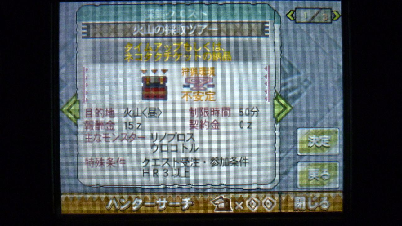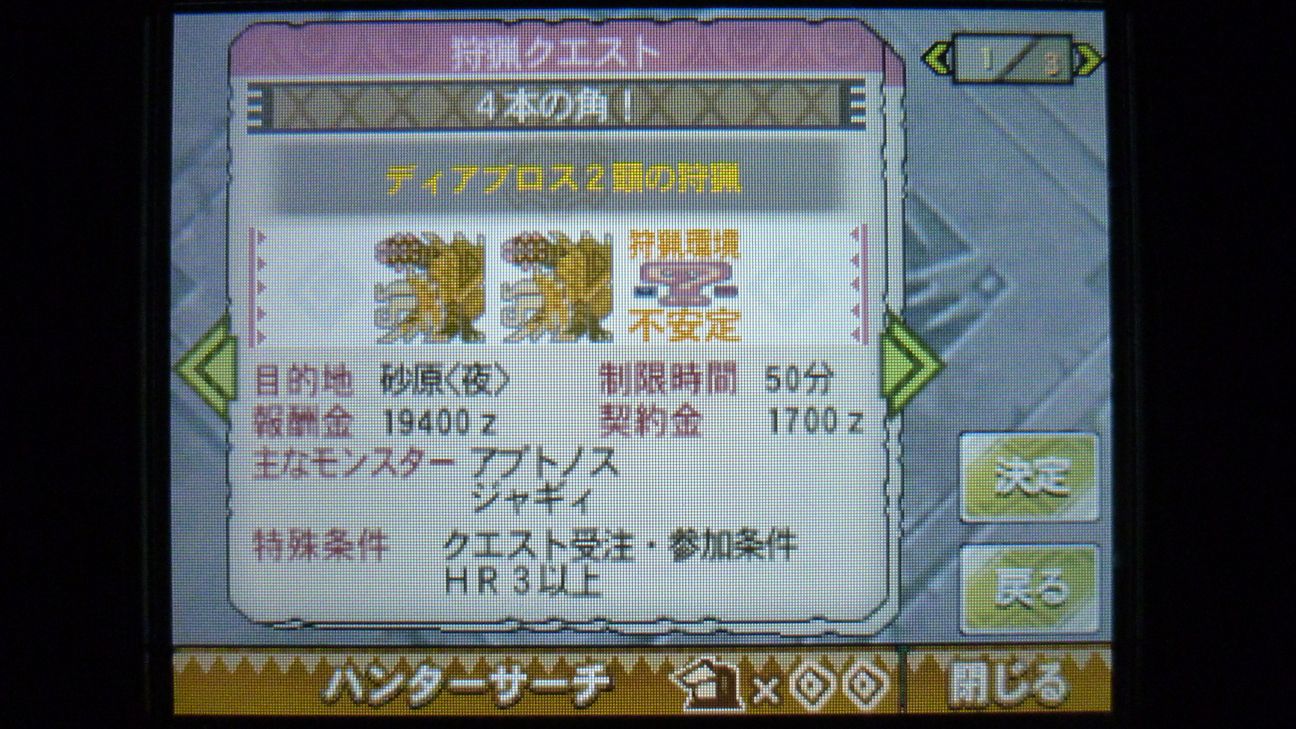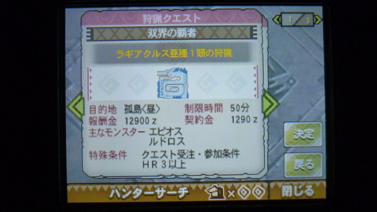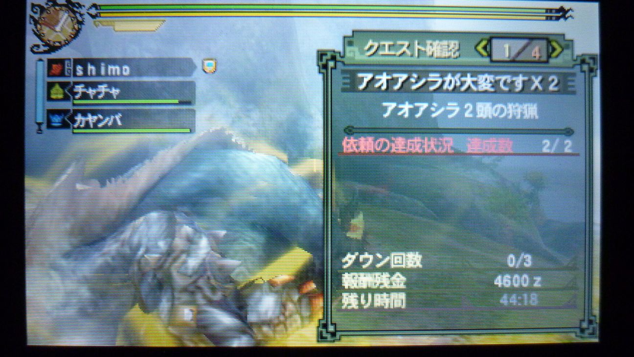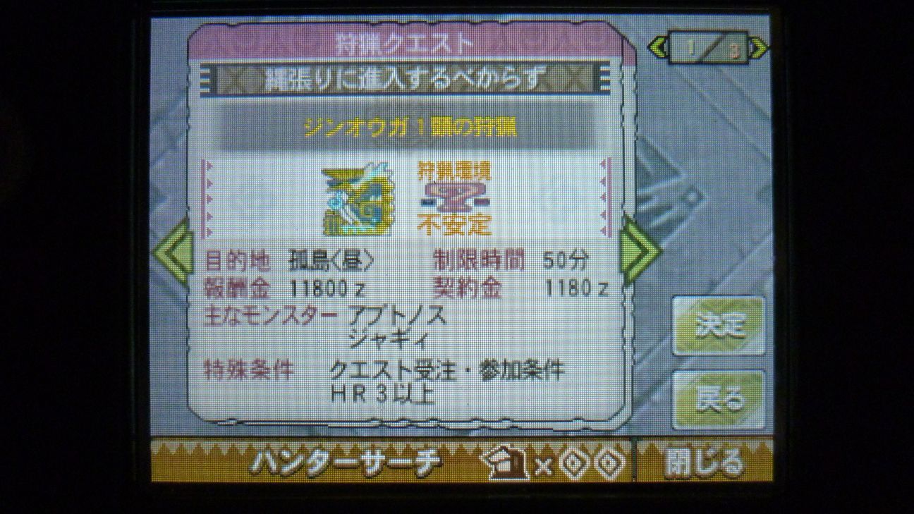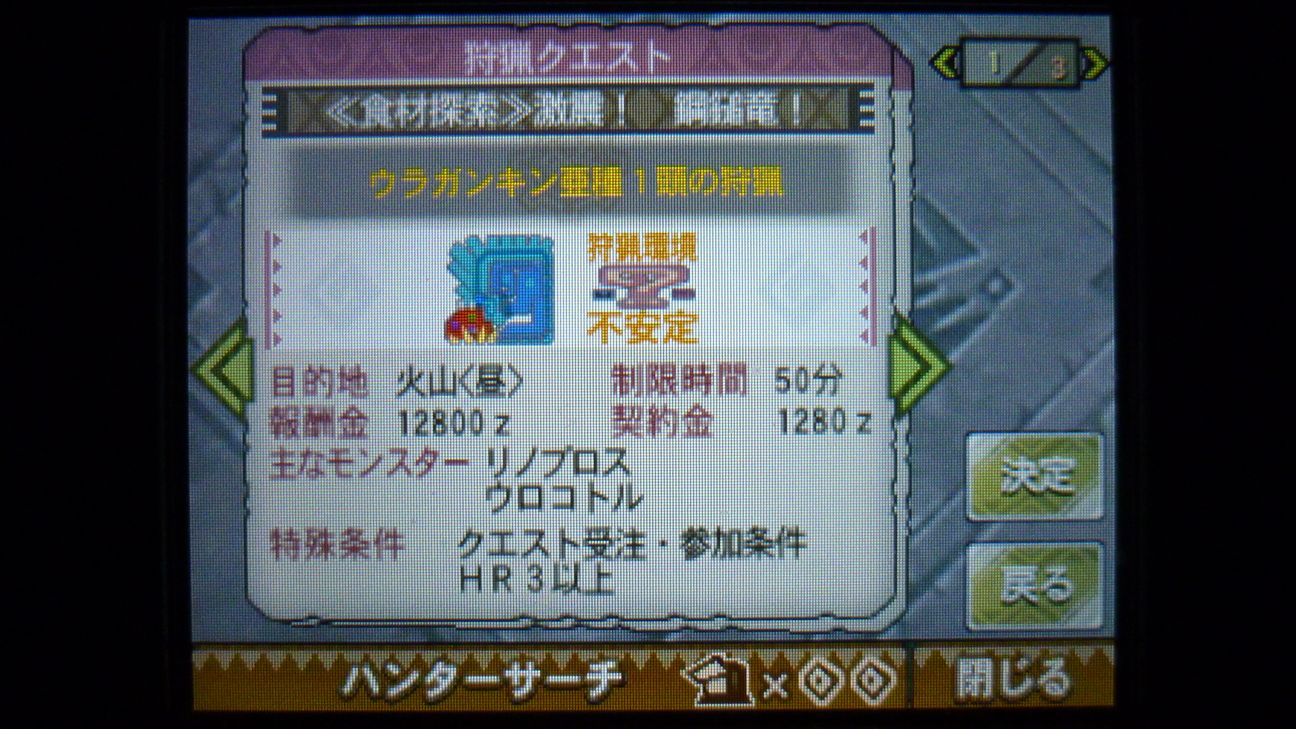 ジンオウガ連戦だったので、何かインターバルになりそうな軽めのクエはと…