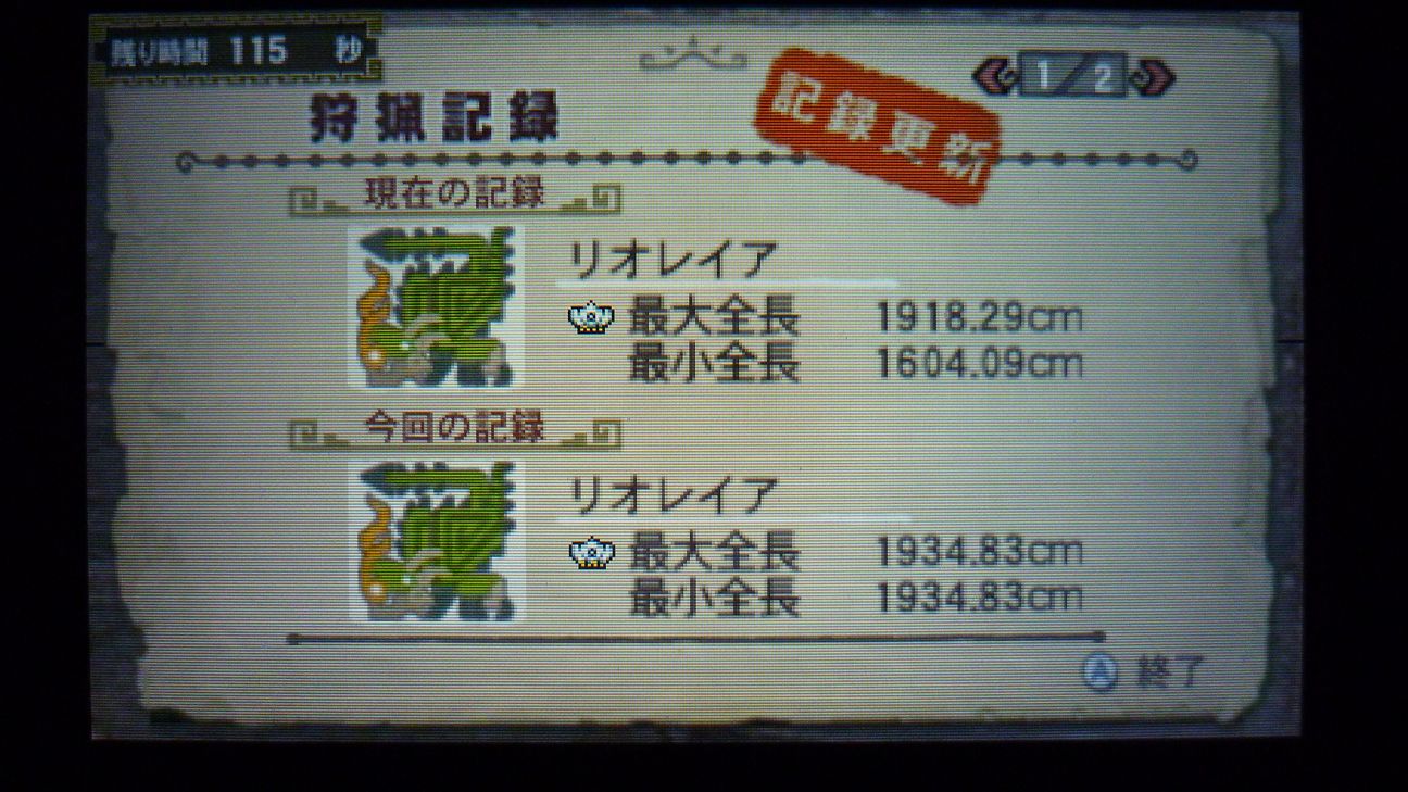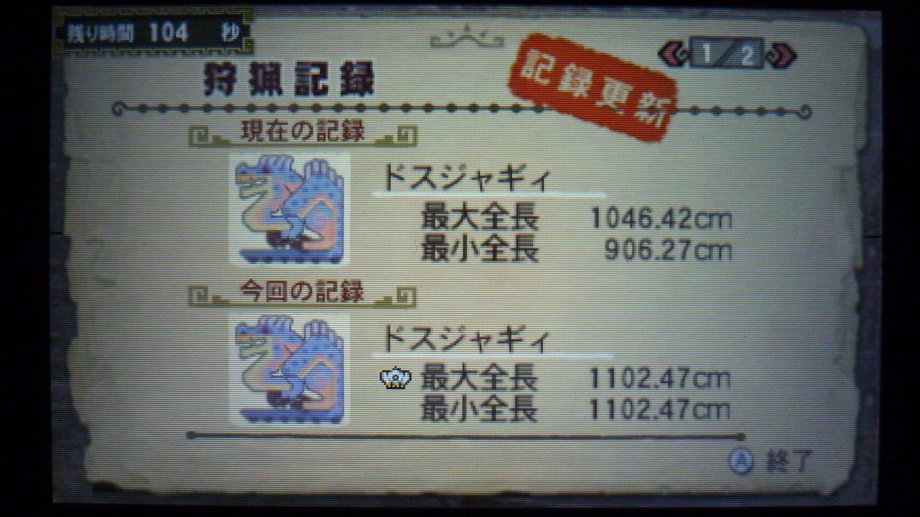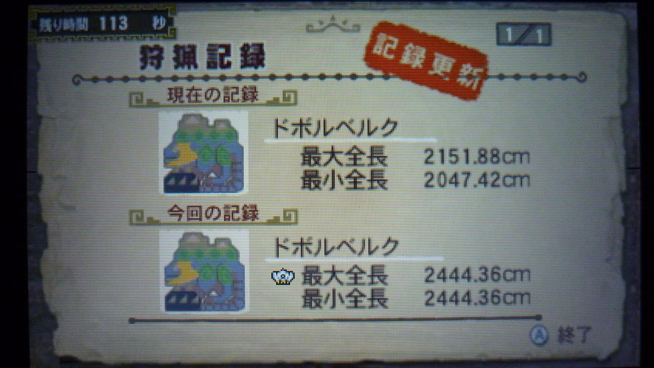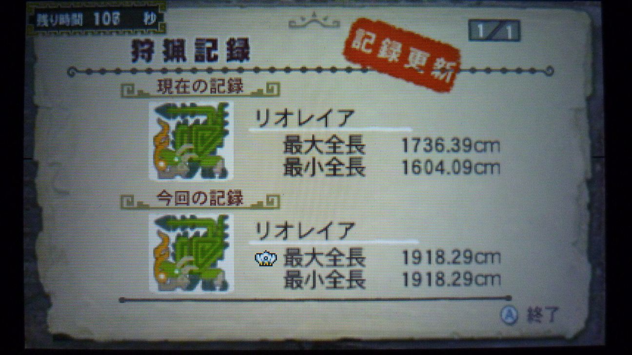 そうこうしてる内に、これまた早い時間で狩猟完了。