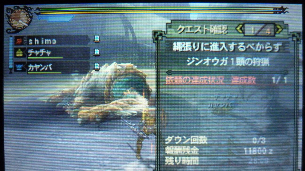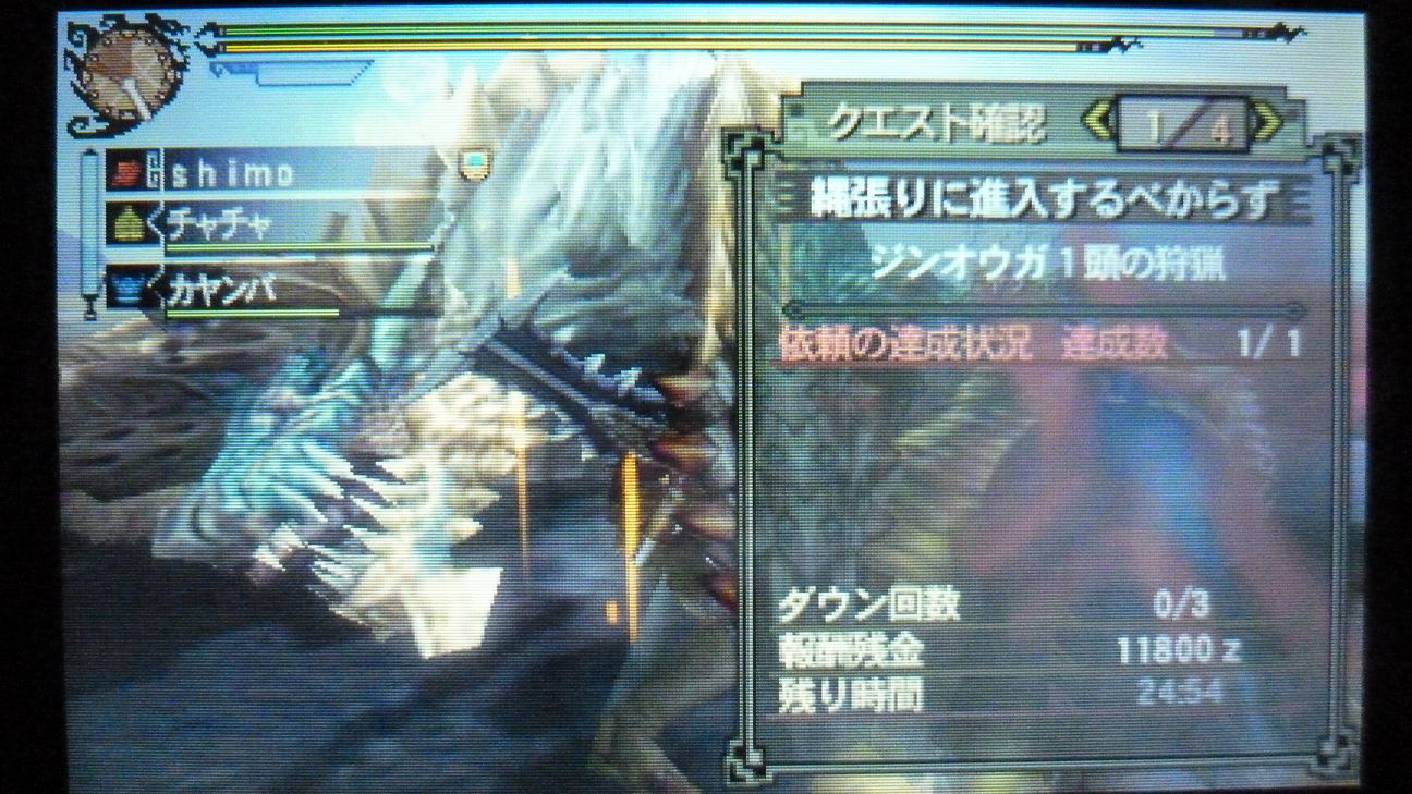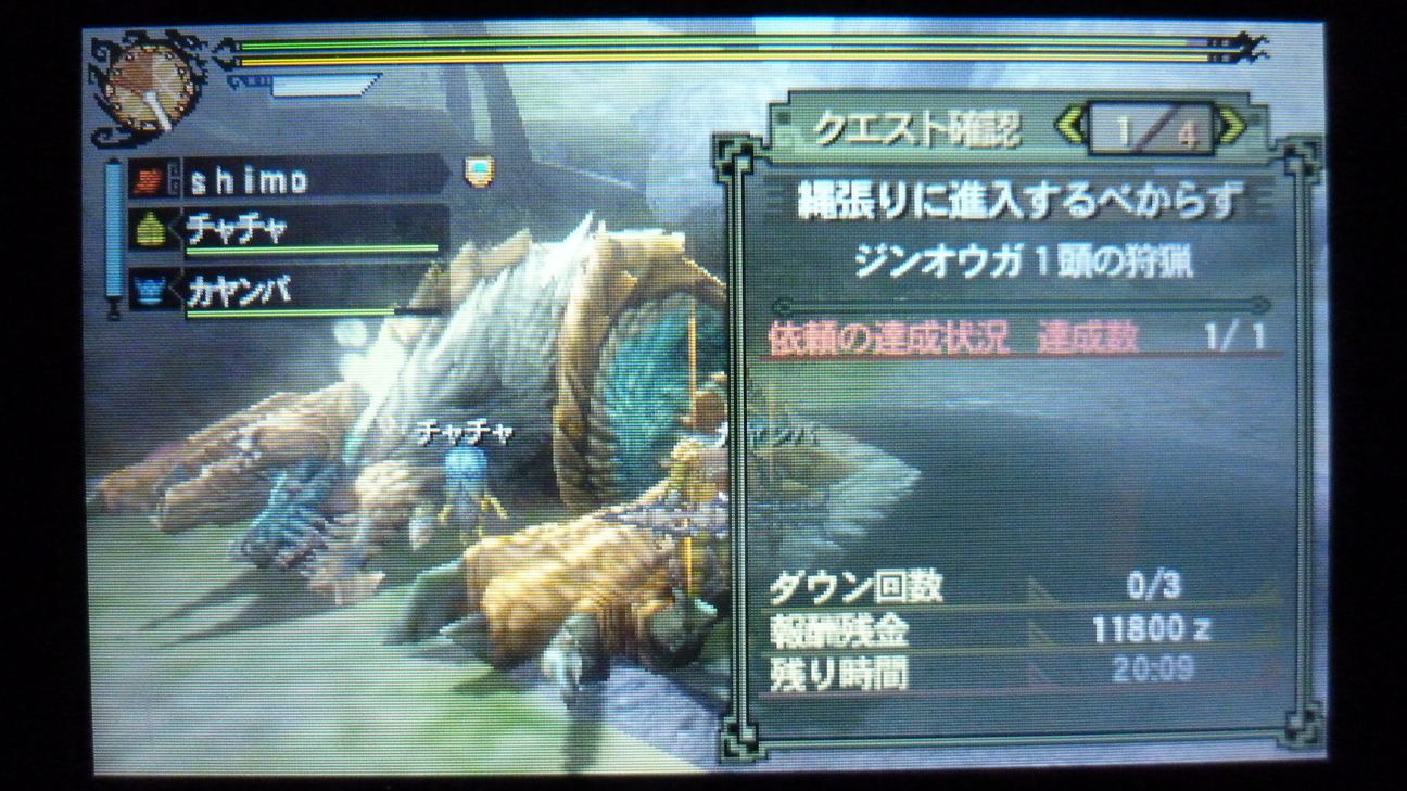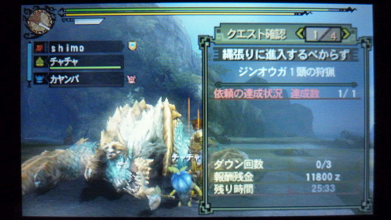 この後は武器作成のため、再びジンオウガ…連戦。