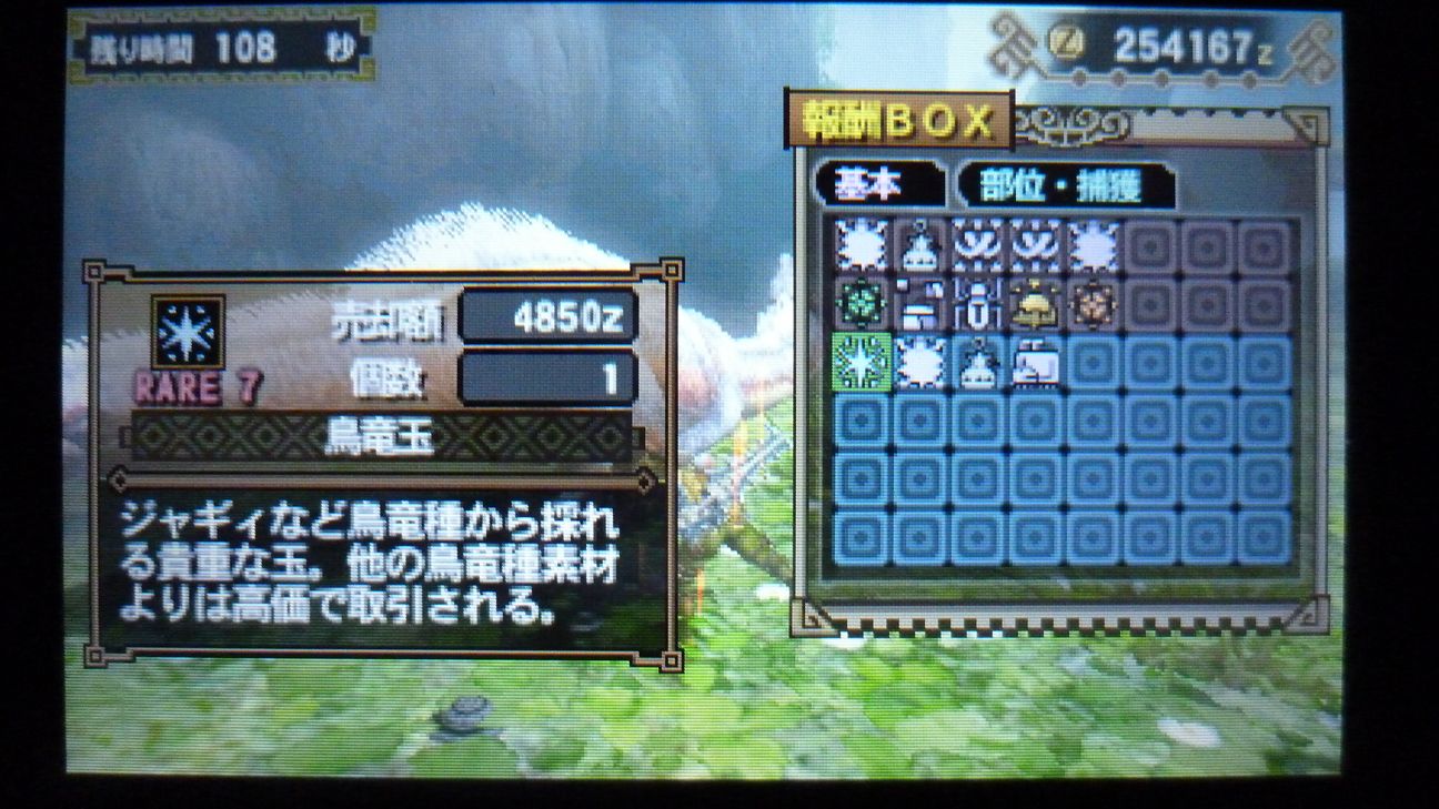 狩猟時間はかかったけど、1頭目狩猟後は時間がたっぷりあったので、終盤の捕獲で焦ったこと