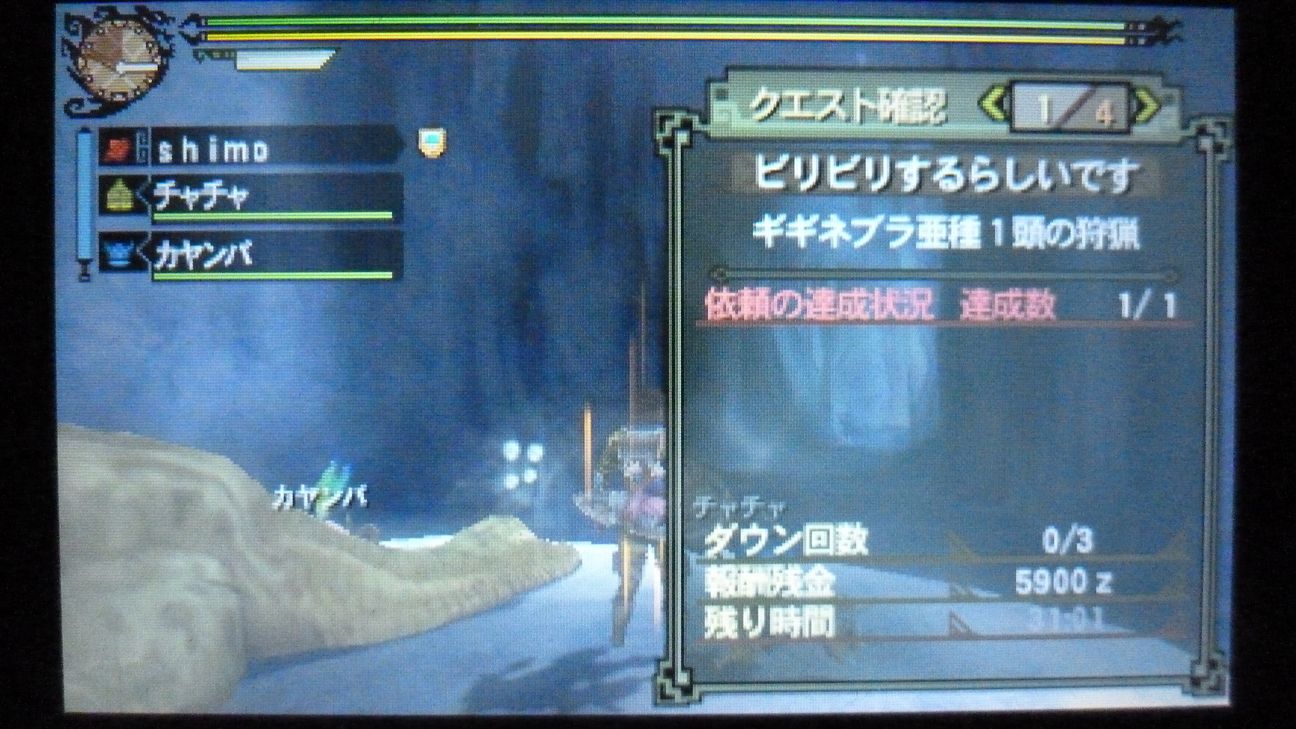 ネブラ亜種は麻痺コンボで乙仕掛けたが、カヤンバかチャチャが攻撃範囲外に