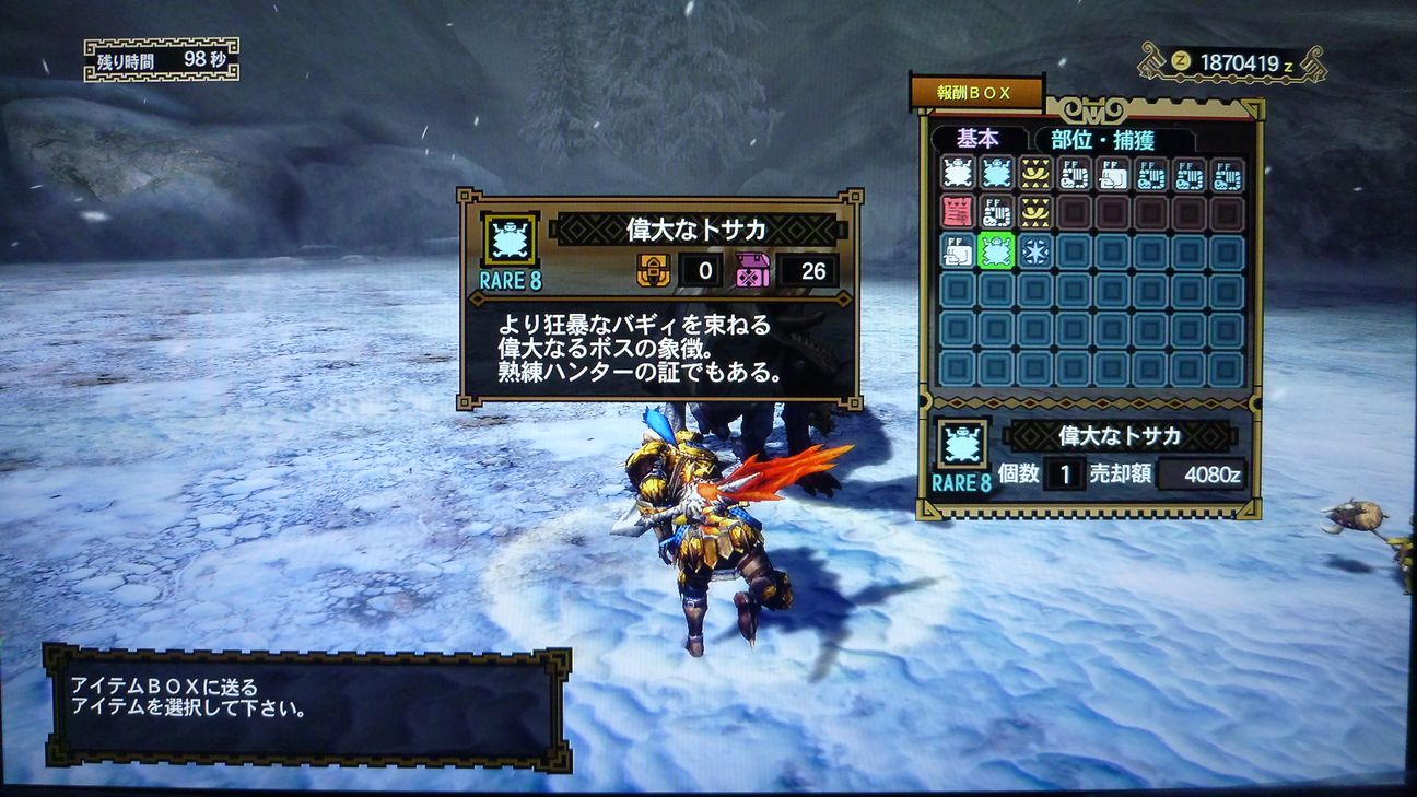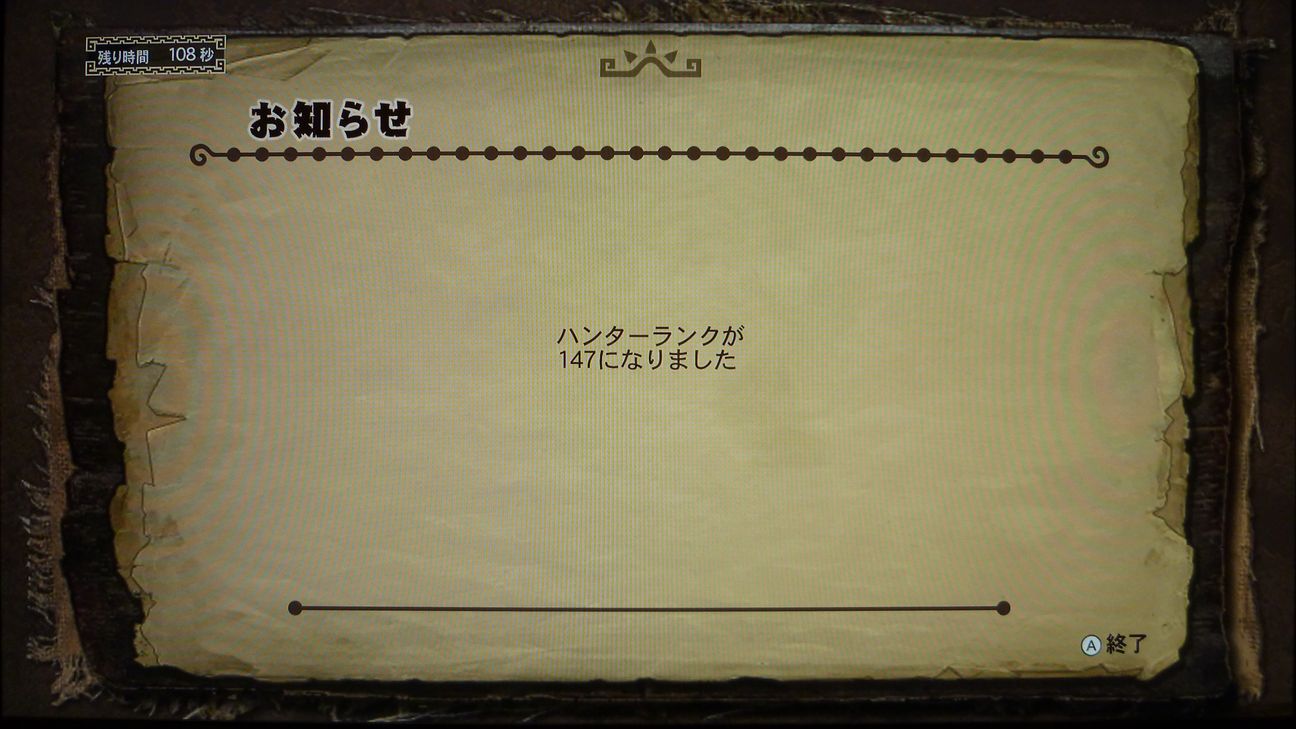虫採取の時間も合わせて、前よりは狩猟時間はかかりました。