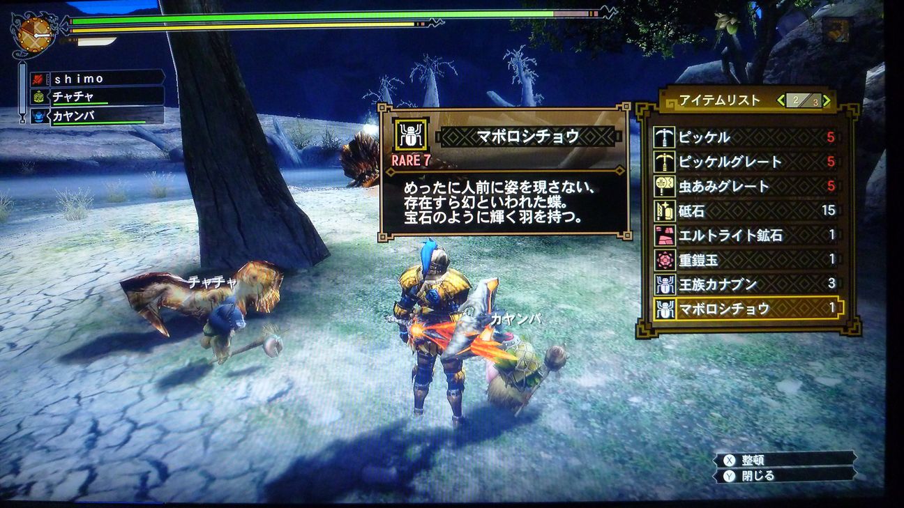 戻ってきてからアイテム確認、マボロシチョウ6つにマレコガネも!