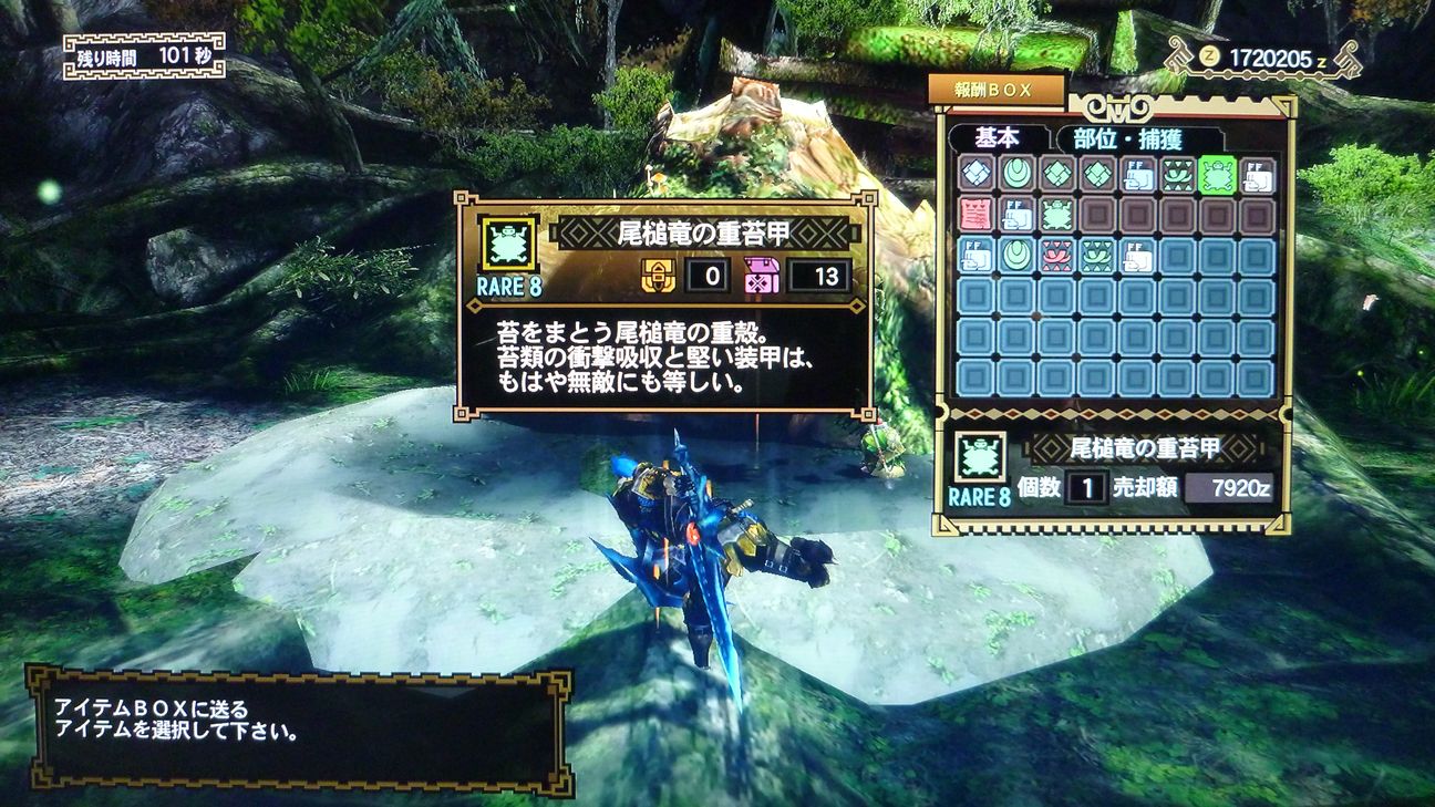 重尾甲が少なかったけど、尻尾剥ぎ取りやピッケルでも手に入り、