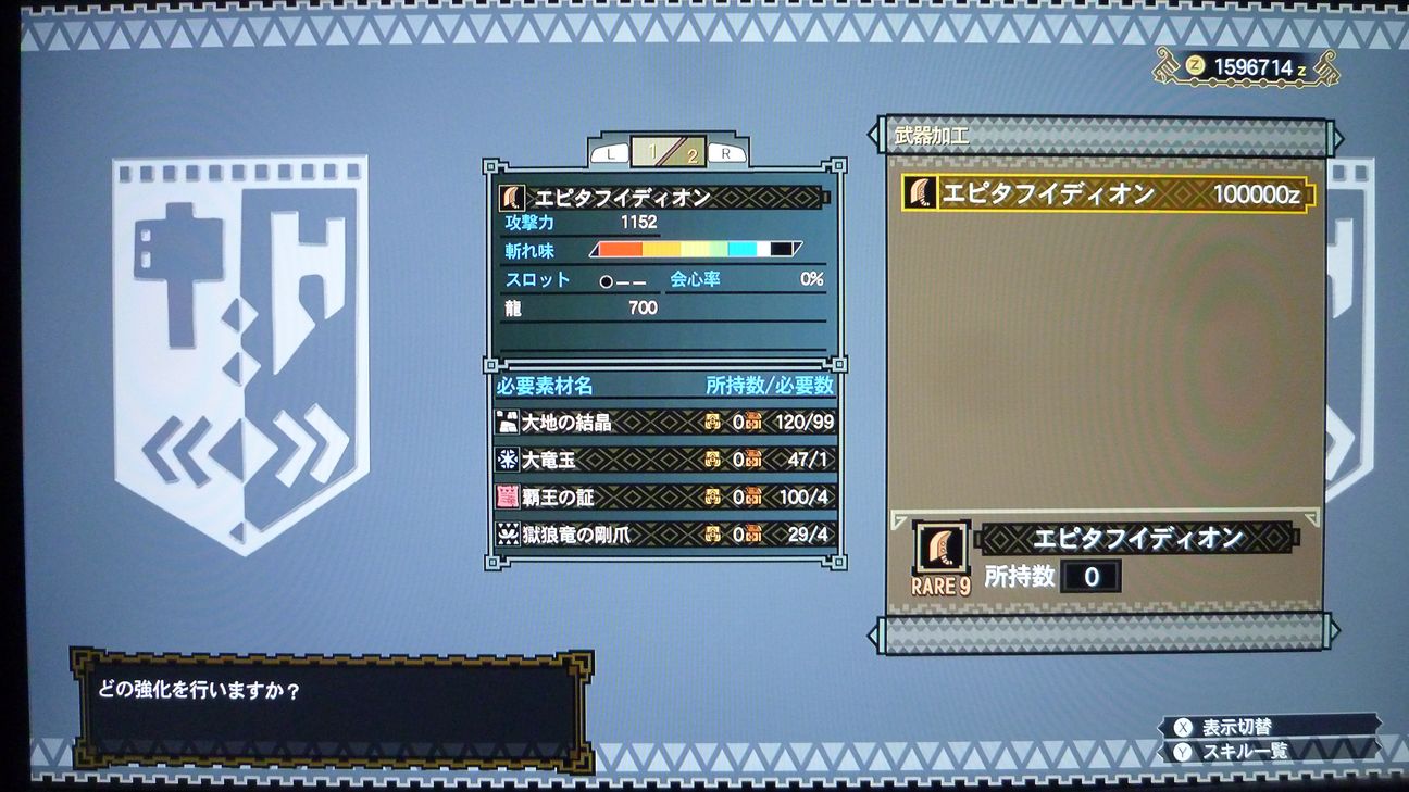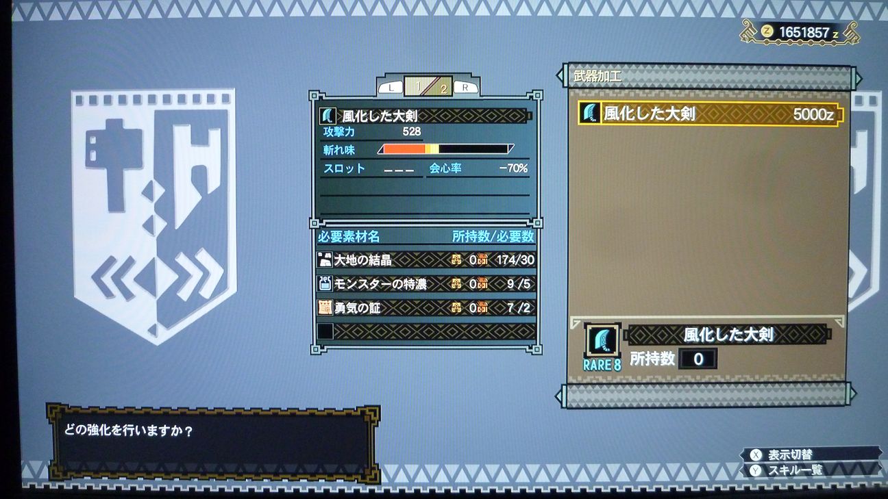 昨日の武器強化の続き、これで大剣は6本目になります。