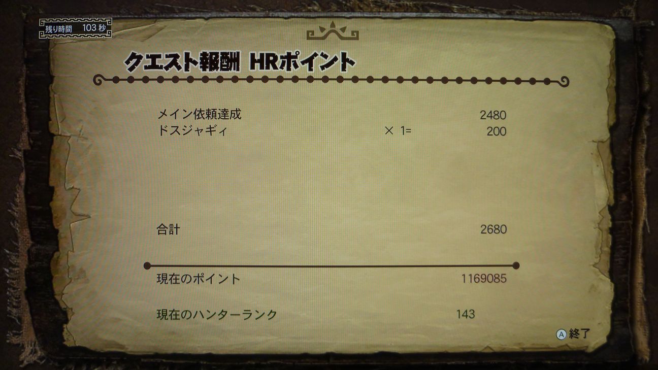 狩猟中に999ポイントになったので記念に撮ってみました。