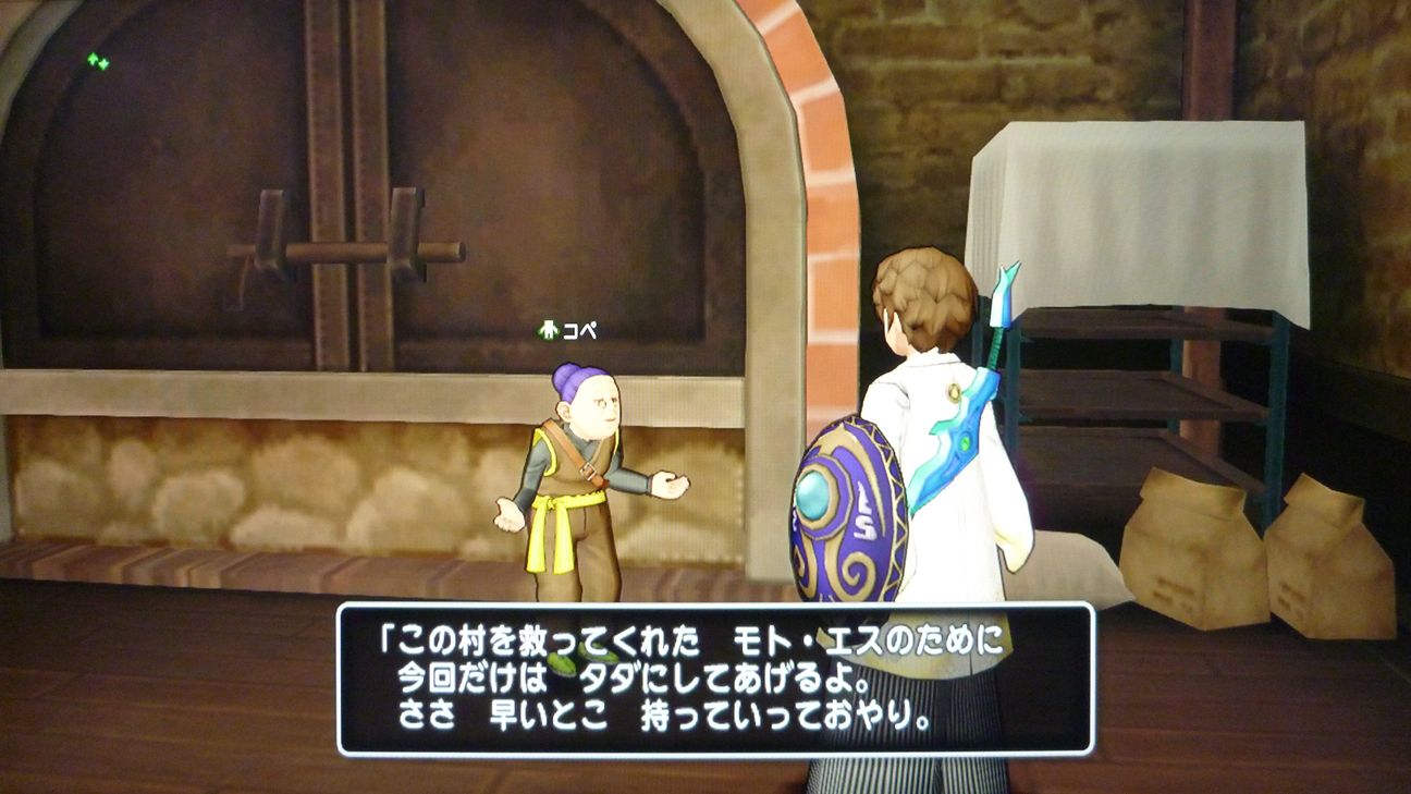 コペばあさんに話しかけると、パンを切るのに必要なナイフを求められます。