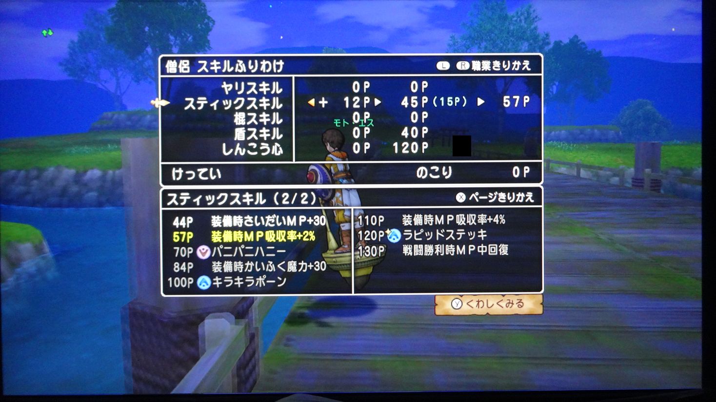 きょくげいスキルはスルーして盾を重点的に振り分け。