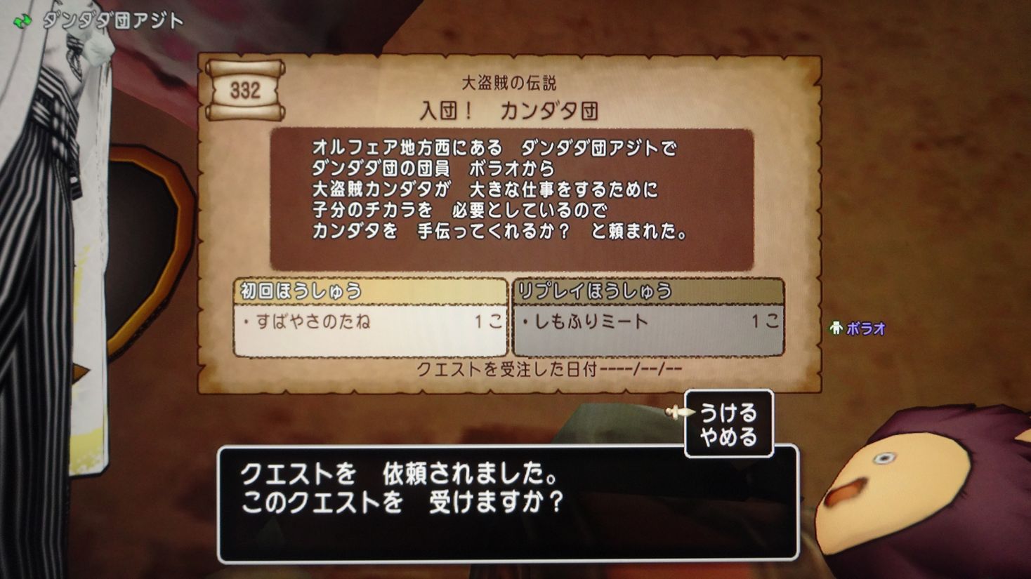 クエストの仕組みが変わってからは初めてなので、いろいろと説明がありました。