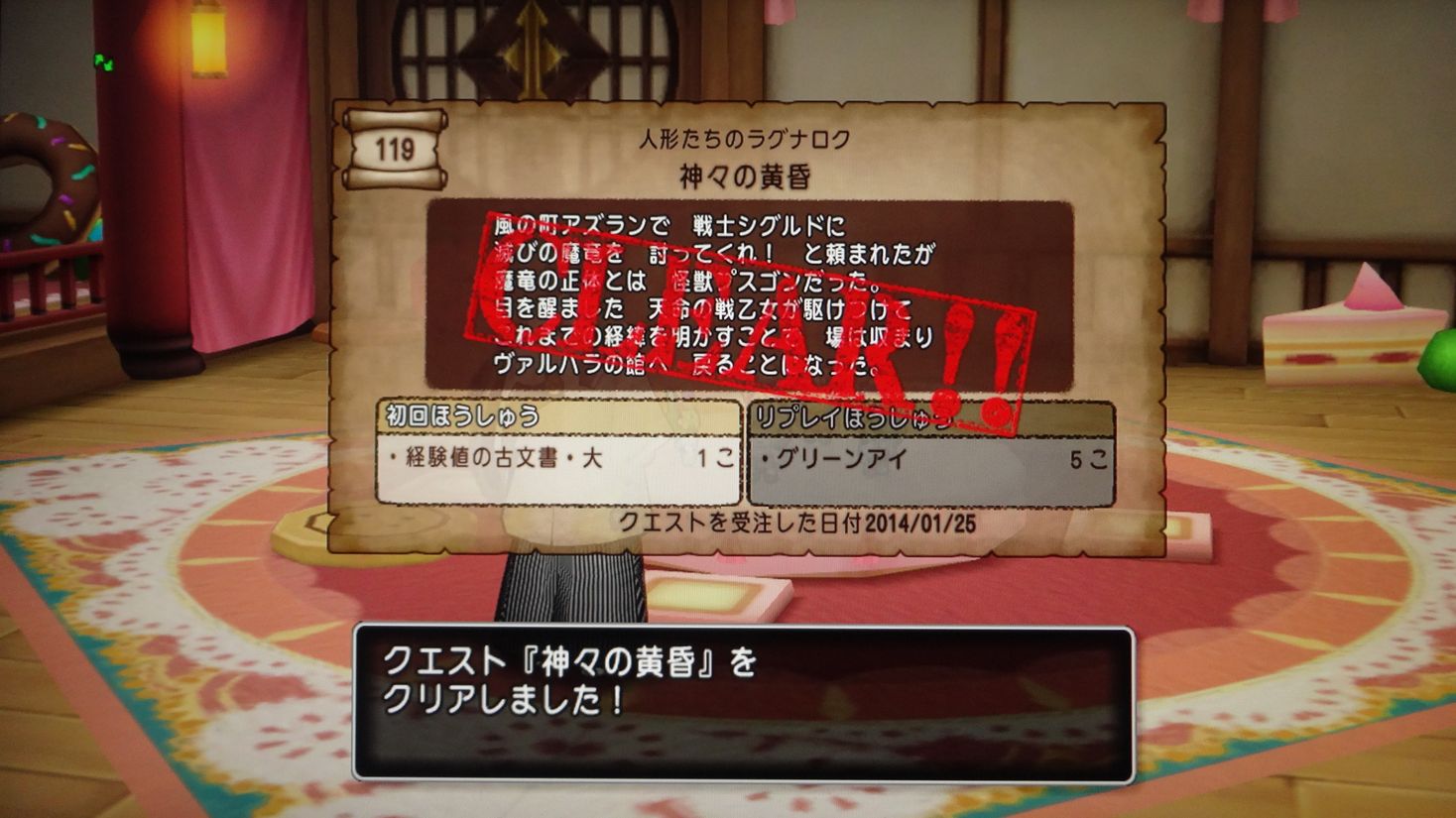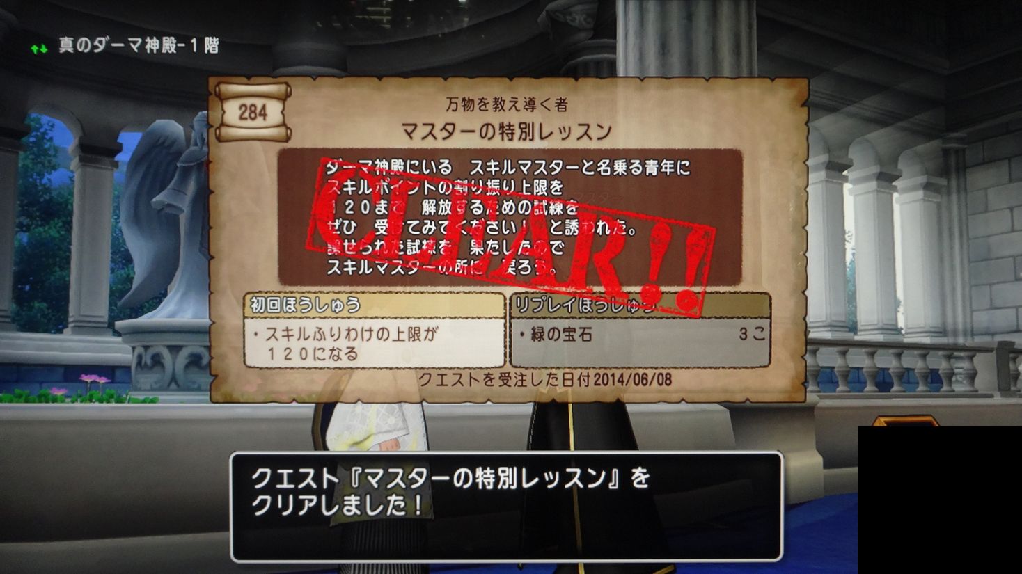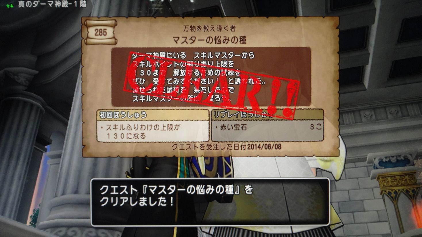 報酬はスキルの振り分け上限が120になる。経験値12600ポイント、名声54ポイントです。