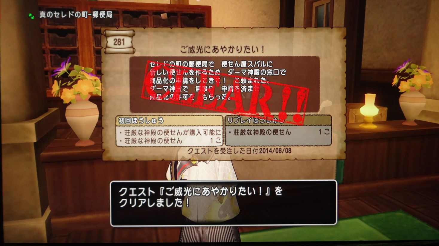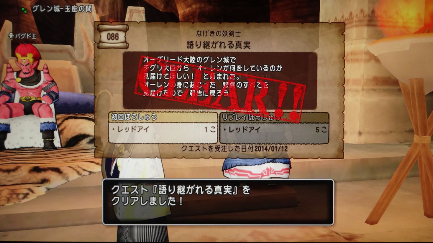 報酬はヒスイのカギ1つ、経験値12180ポイント、名声80ポイント。
