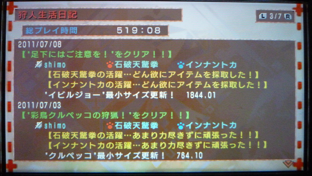 - PSP・モンスターハンターポータブル3rdプレイ記|