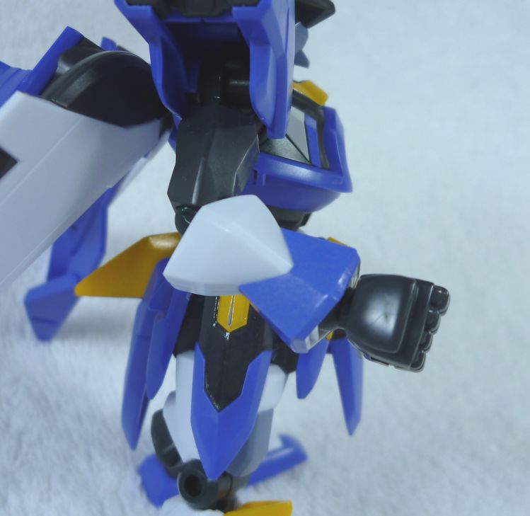 肩の可動。付け根はボールジョイント接続なのでスイング可動ができます。