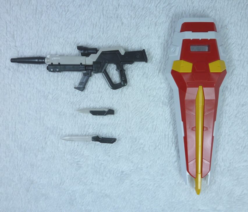 サイドアーマーにも収納できます。組む際はパーツが細かいので破損に注意。