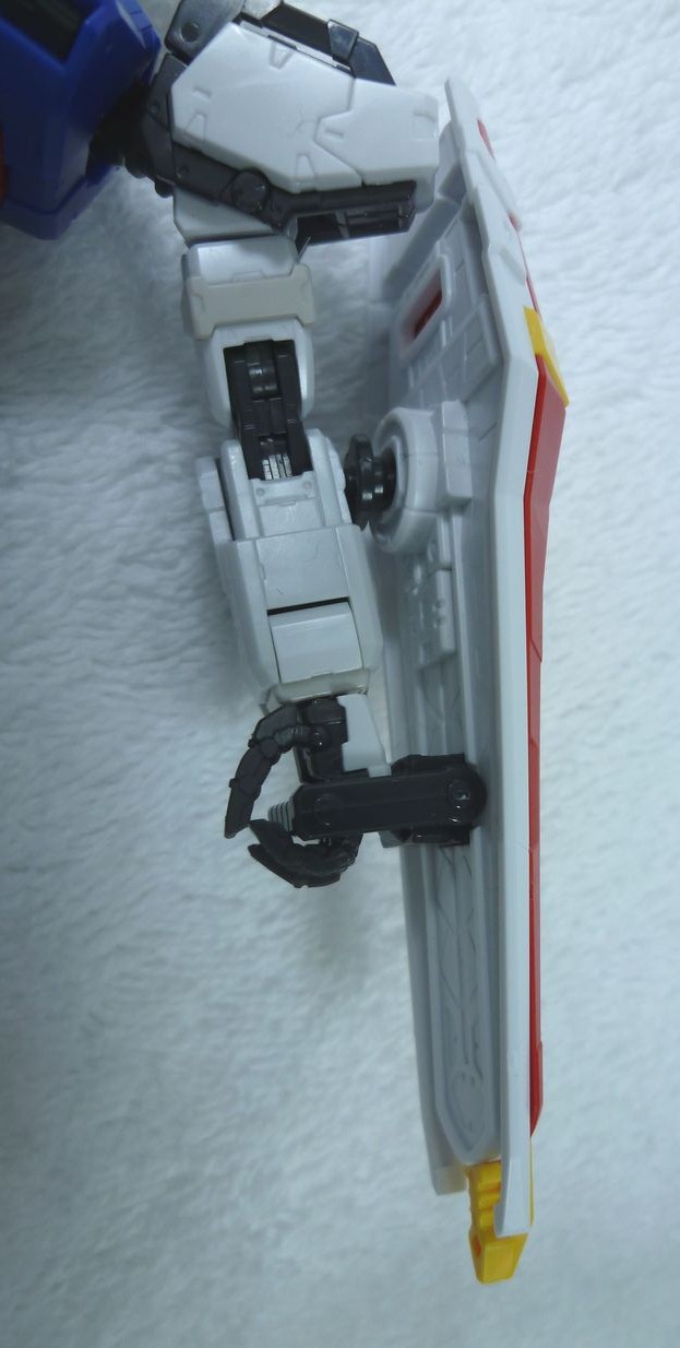 肩の可動(左腕)と、腕の可動(右腕)、MG程ではありませんが、ここまで動けば及第点。