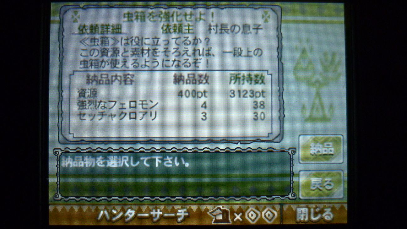 あとは虫箱を進化させるということで資源を納品!