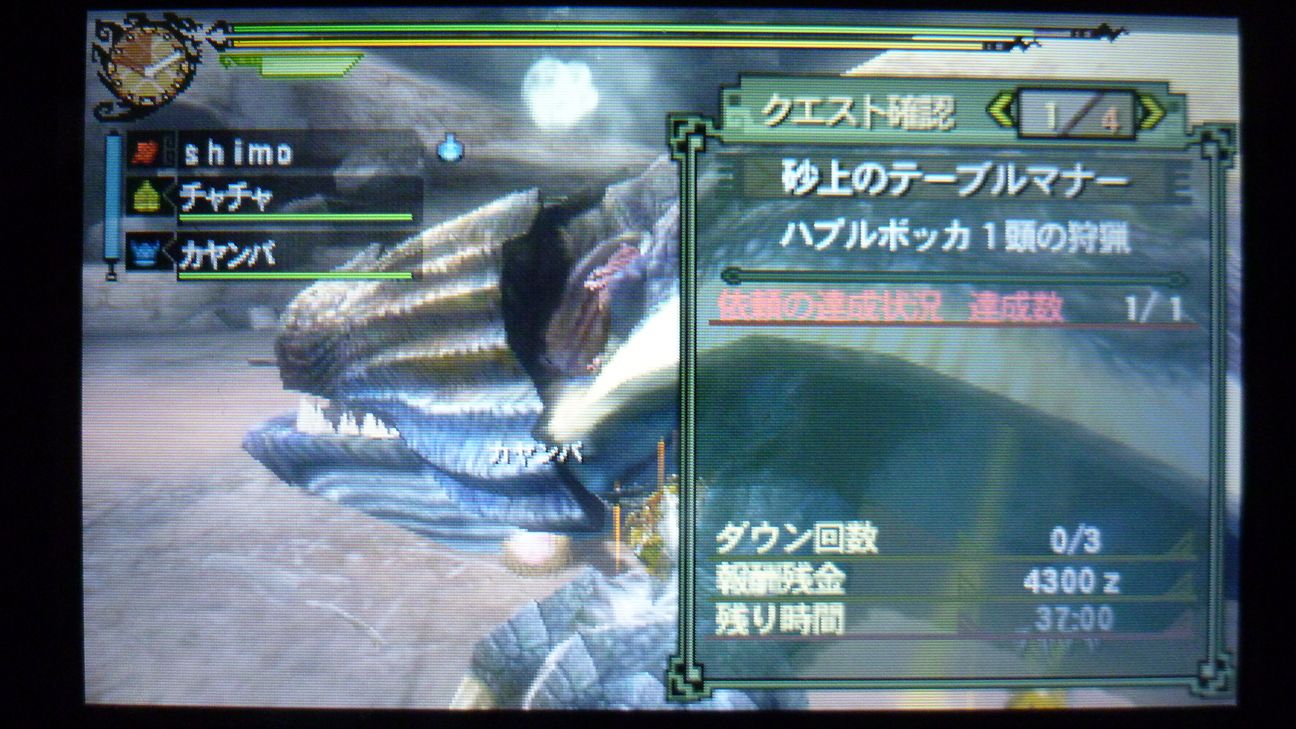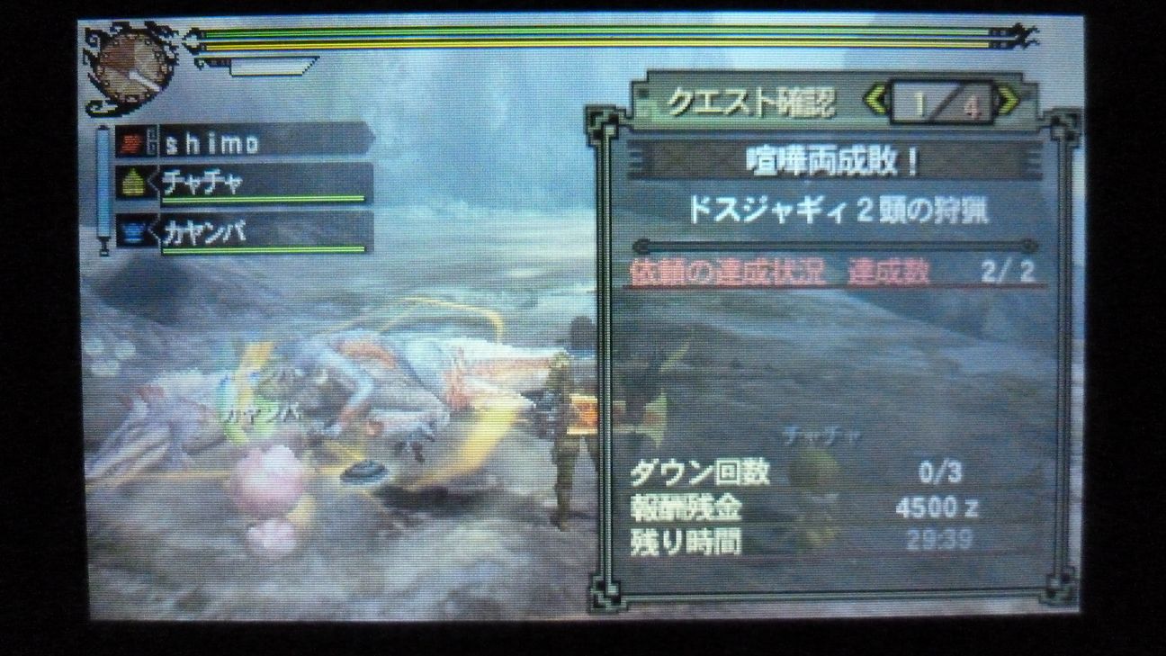 1回目は足引きずらないなぁと攻撃しすぎてオーバーキル…捕獲クエではないけど。
